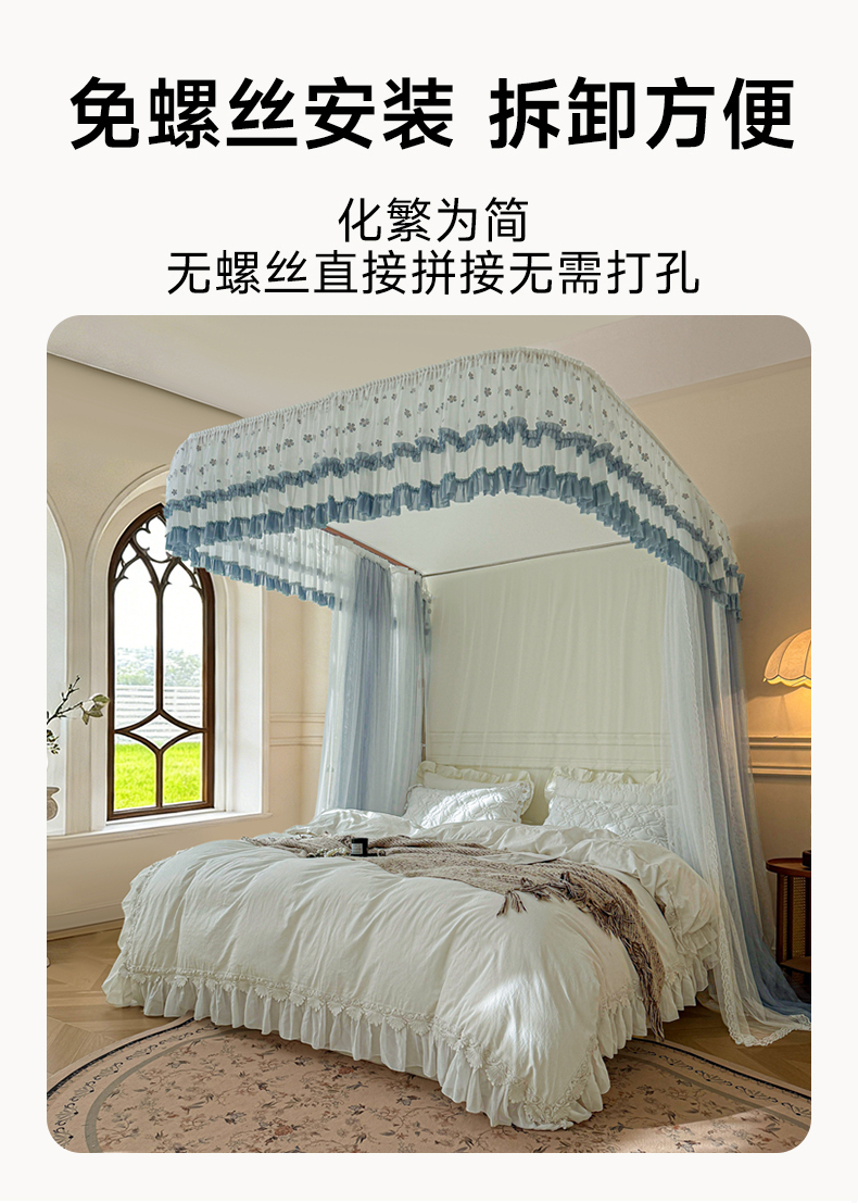 (总)梦尔佳蚊帐 2026新款浪漫双层花边蝴蝶结导轨蚊帐-花香其乐,花香其乐-水蓝,花香其乐-奶黄,花香其乐-婚纱白,花香其乐-藕玉,花香其乐-蓝灰