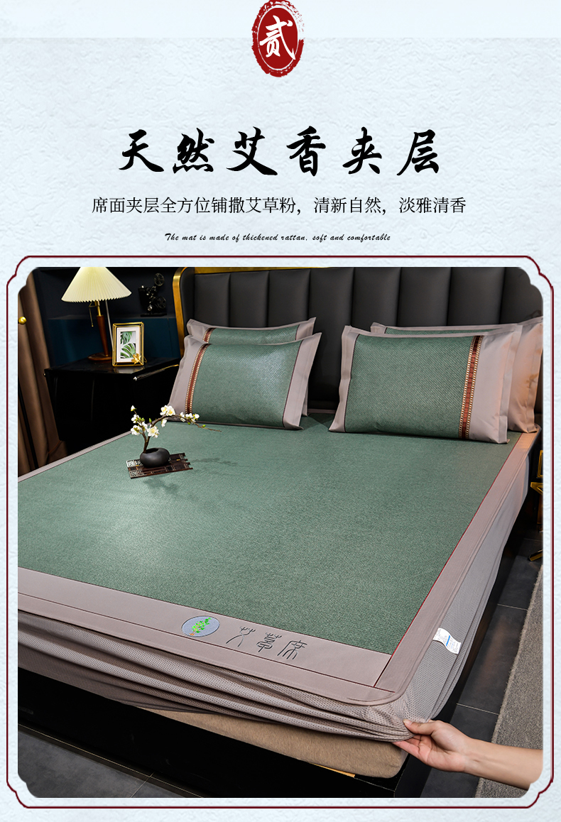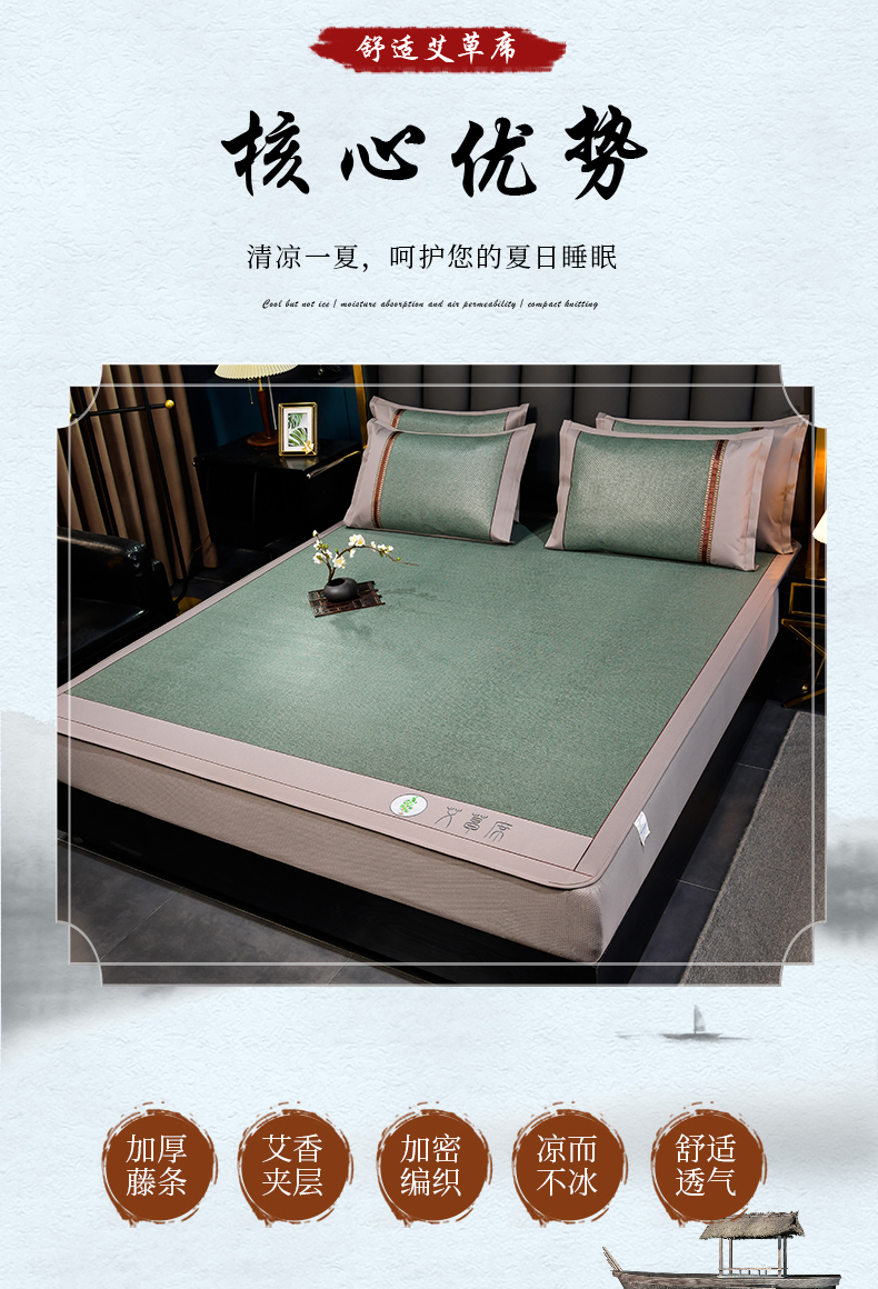 当前位置: 91家纺网 > 商品网购 > 床上用品 > 凉席 > 其他凉席 > 小牛席业 2026新款加厚款-经典艾草养生席(床笠款) 艾草养生席-床笠款-墨绿