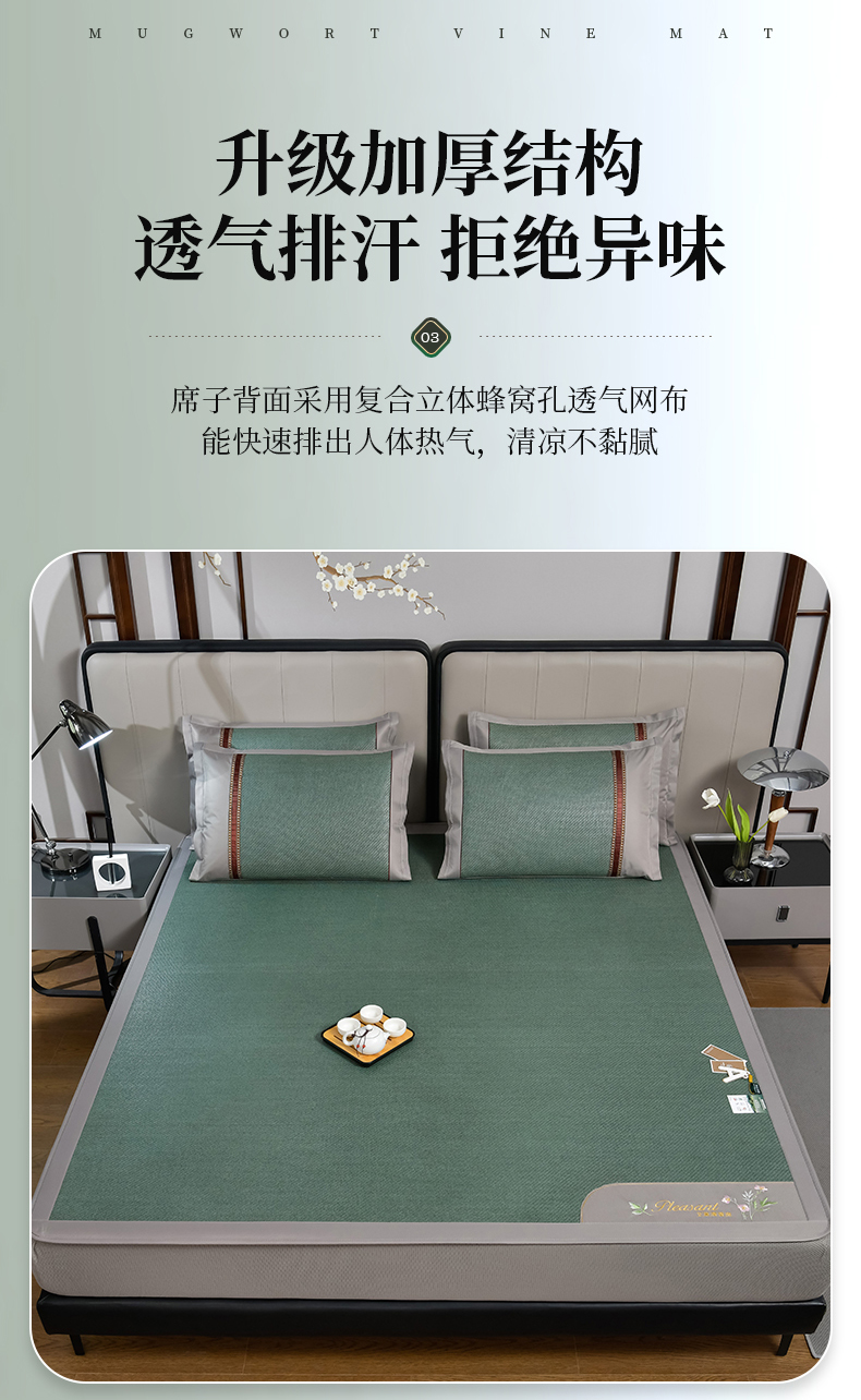 当前位置: 91家纺网 > 商品网购 > 床上用品 > 凉席 > 其他凉席 > 小牛席业 2026新款加厚款-艾草清新养生席(床笠款) 加厚款-艾草清香养生(床笠款)-墨绿