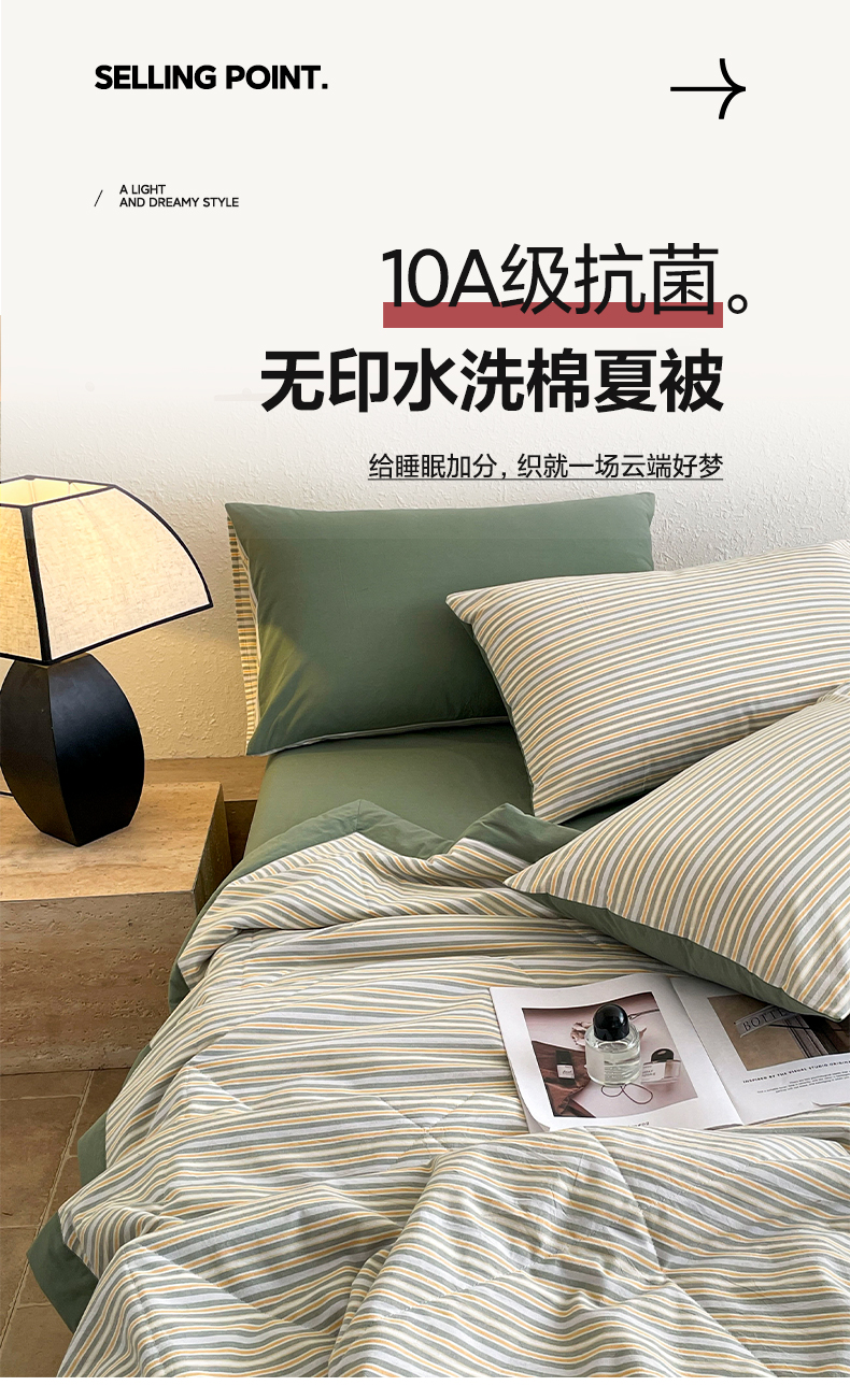 当前位置: 91家纺网 > 商品网购 > 被子 > 夏被 > 宝士康家纺 2026新款10A抗菌无印风单夏被/夏被四件套 被子被芯 小绿条