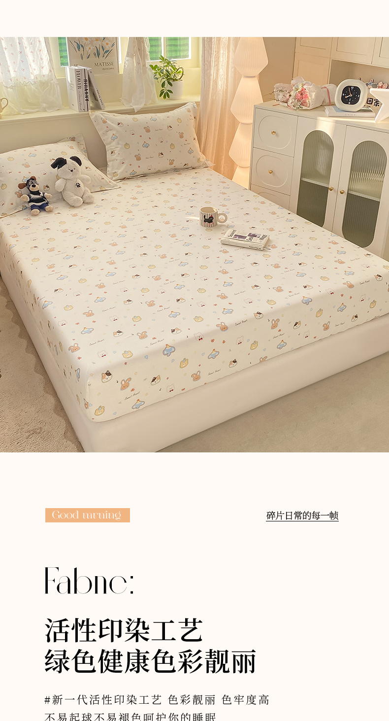 商品名称:女子家纺 2026新款全棉纯棉印花小清新系列单床笠单品床笠床笠单件 萌宠国度