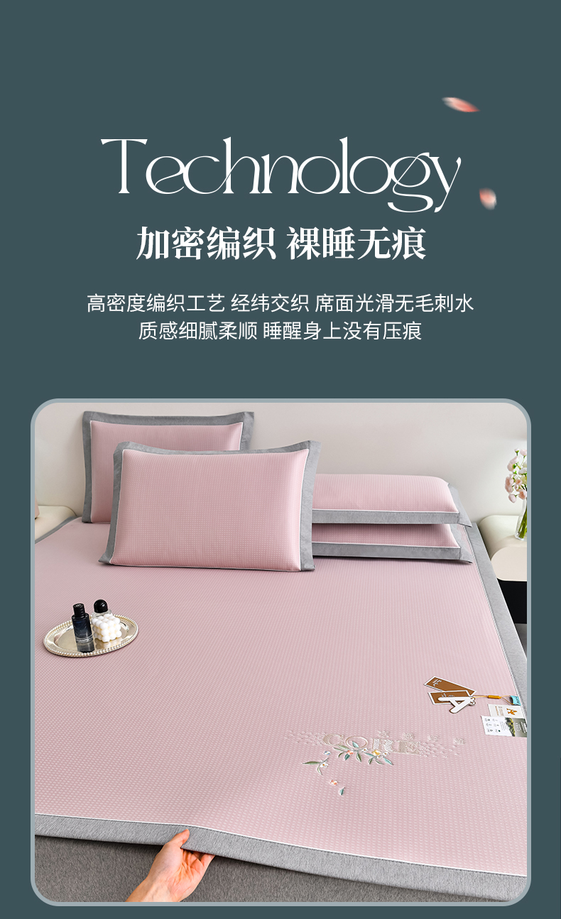 (总)2023新款超精密冰丝席-小斜纹系列-床笠款藤席凉席竹席,粉色,蓝色,绿色,银灰