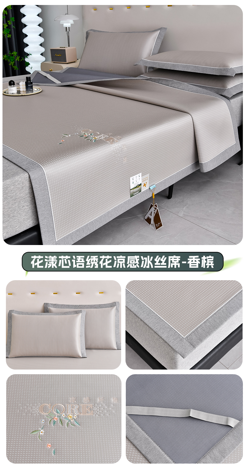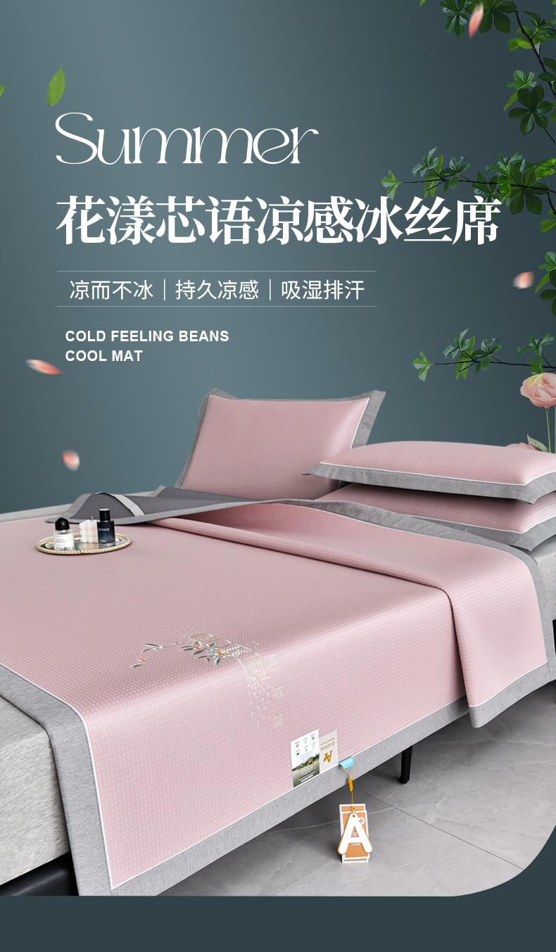 商品名称:(总)小牛席业 2026新款花漾芯语绣花凉感冰丝席系列凉席藤席冰藤席冰丝席草席竹席乳胶席凉感豆豆席