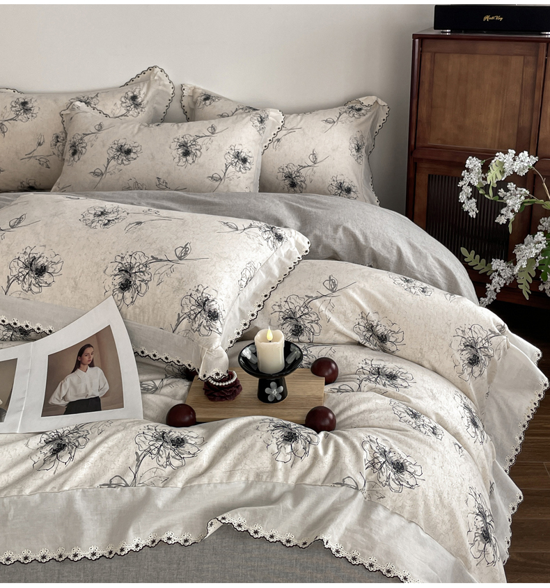 (总)慕晨 2026新款天丝莱赛尔棉麻数码印色织花边被套四件套高级田园美式直播热款