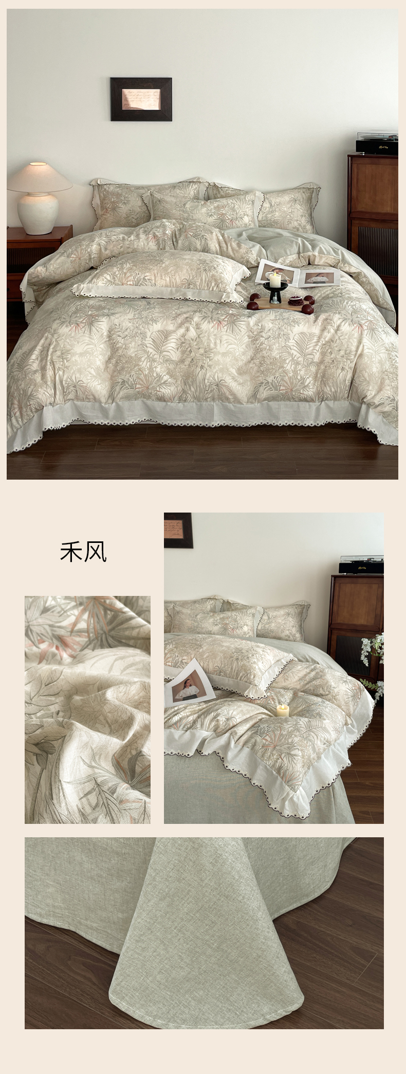 商品名称:(总)慕晨 2026新款天丝莱赛尔棉麻数码印色织花边被套四件套高级田园美式直播热款