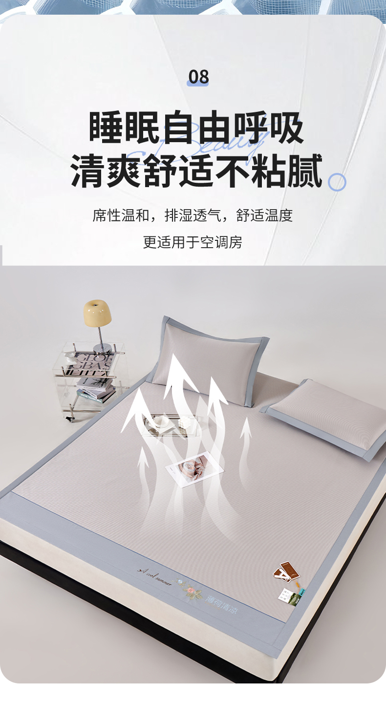 (总)2023新款超精密冰丝席-小斜纹系列-床笠款藤席凉席竹席,粉色,蓝色,绿色,银灰