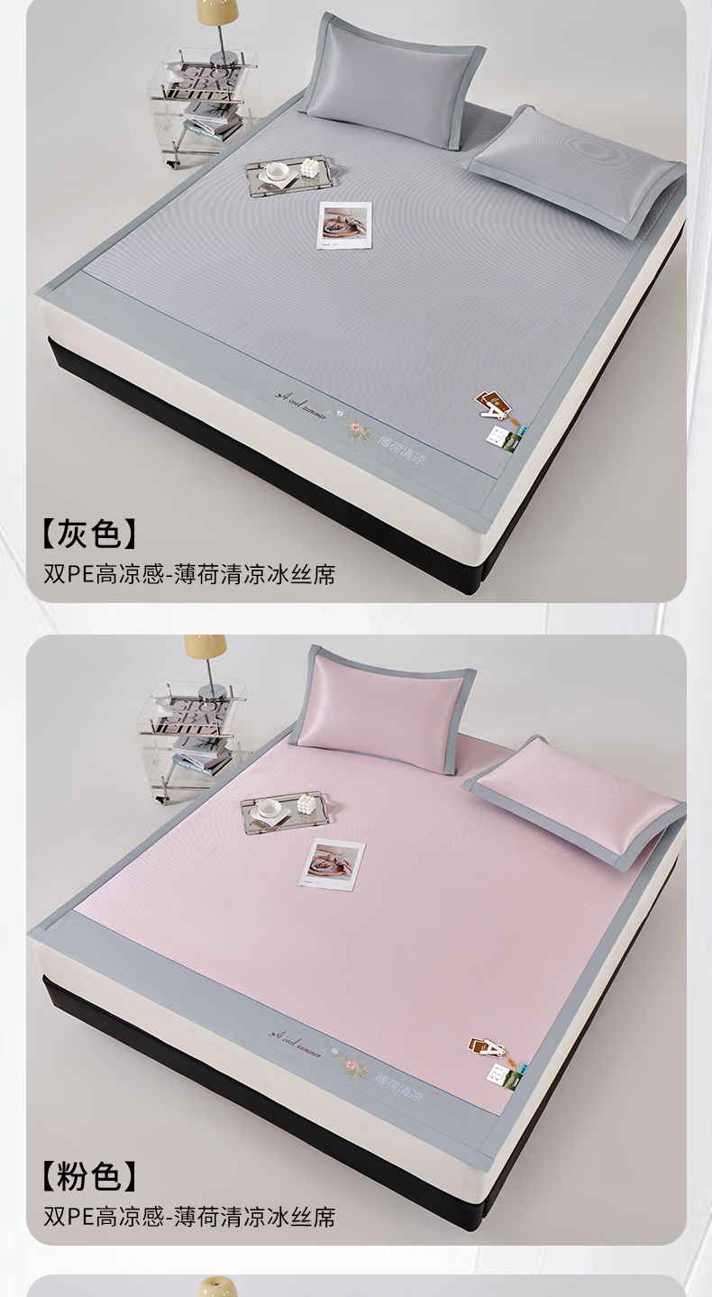(总)小牛席业 2026春夏新款轻奢半定位凉感冰丝席凉席席子系列床笠款,轻奢半定位-粉色 床笠款,轻奢半定位-灰色 床笠款,轻奢半定位-蓝色 床笠款,轻奢半定位-抹茶 床笠款,轻奢半定位-香槟 床笠款
