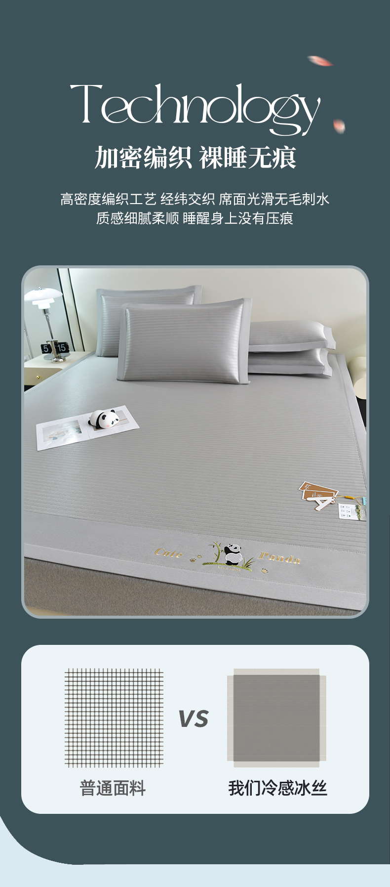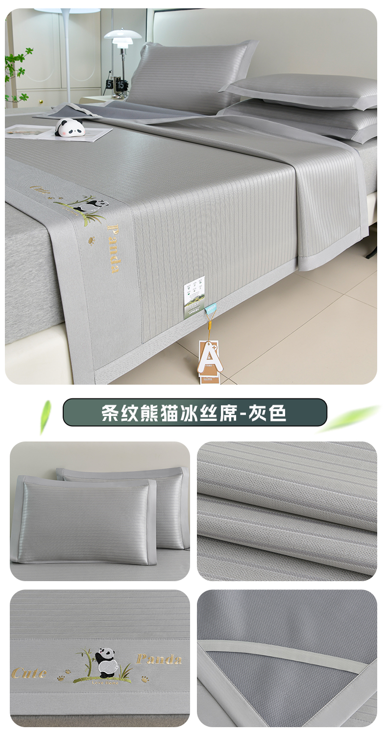 商品名称:小牛席业 2026新款条纹爱家熊猫冰丝席藤席冰藤席冰丝席可机洗凉感冰丝席豆豆席PE霸王 粉色