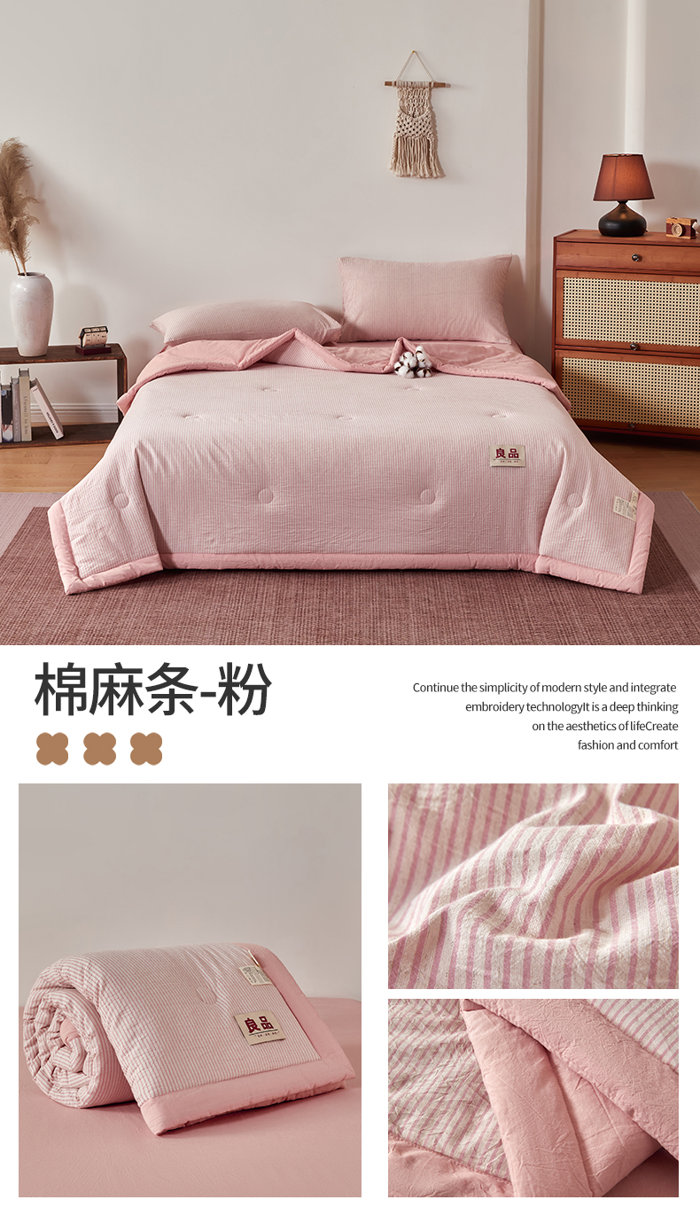 商品名称:(总)恬思语家纺 2026新款春夏新款棉麻条纹棉花夏被空调被夏凉被