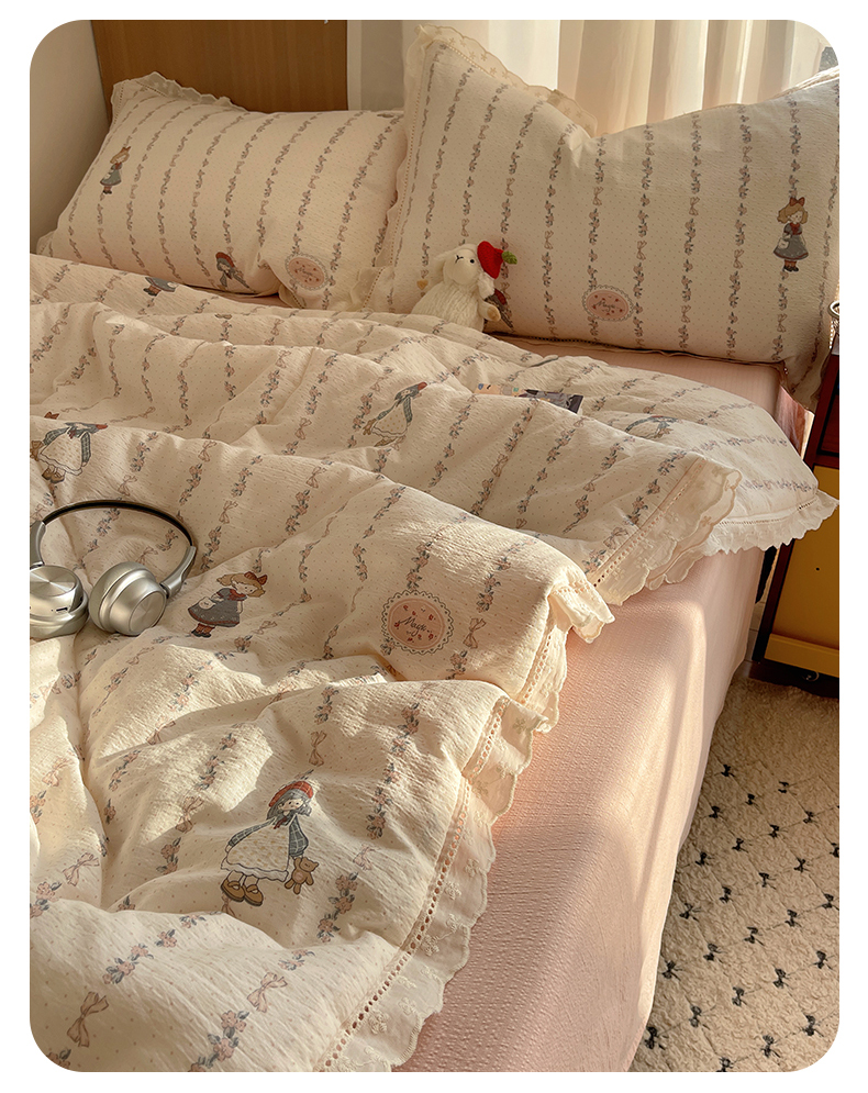 商品名称:梵克保罗 2026春夏新款全棉纯棉花边皱皱纱单夏被夏凉被空调被夏被四件套 樱络紫