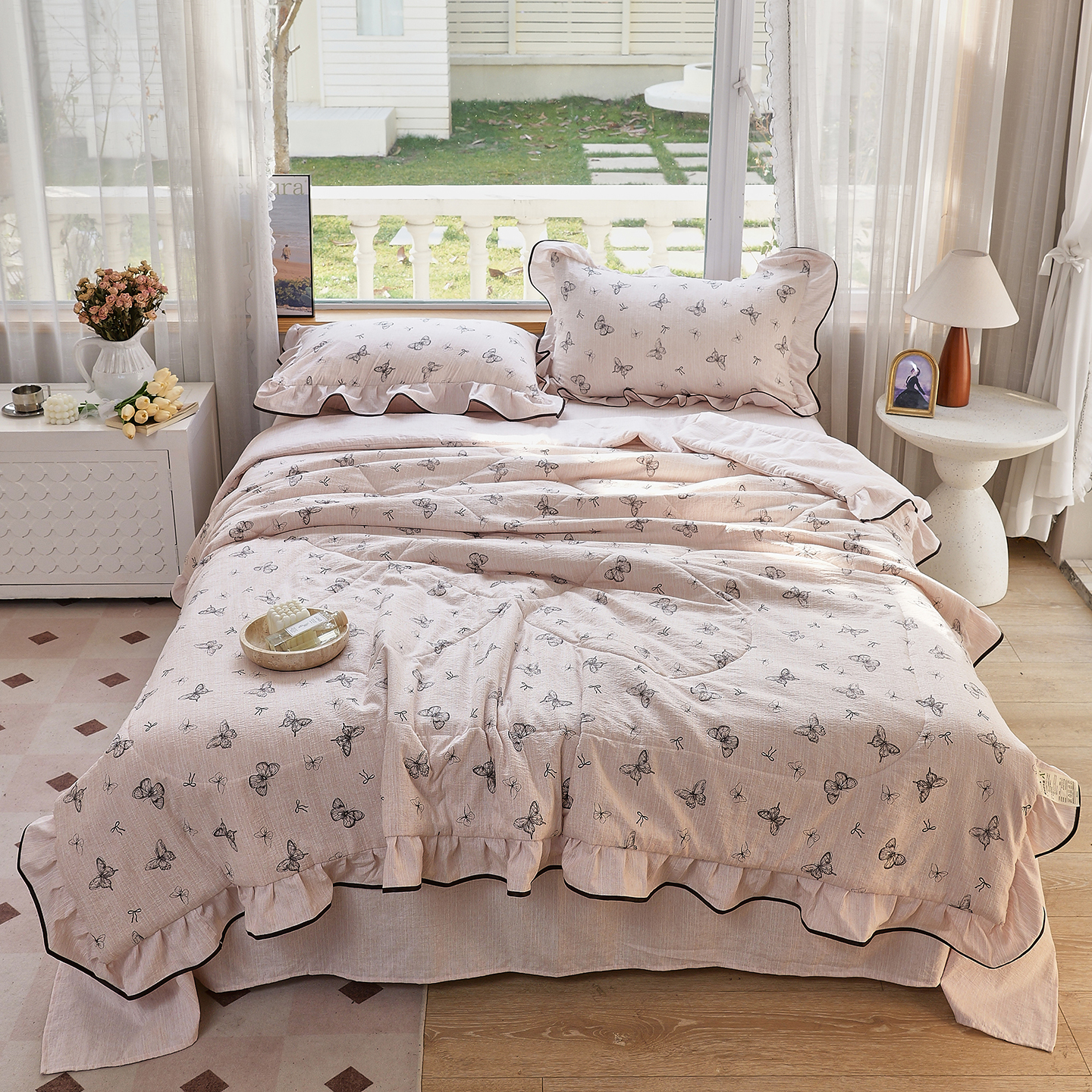 (总)梵克保罗 2026春夏新款雪纺床盖夏被夏凉被空调被四件套单夏被床盖三件套,淡米色,奶茶色,嫩芽绿,仙气紫,玉芙蓉