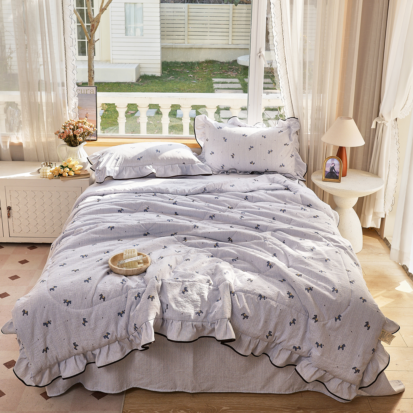 梵克保罗 2026春夏新款提花色织花边夏被四件套单夏被空调被 星梦小狗