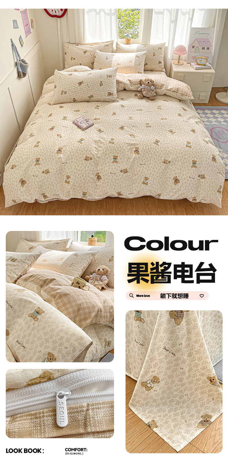 (总)首尔家纺 2026新款全棉纯棉小清新四件套,豹纹小熊,比格熊,波点蝴蝶结,丰收季节,果酱电台,蓝点豹纹,乐遥,玫瑰兔语,奶呼兔兔-米,盼夏少女,森遥,时尚恐龙,水墨嫣然,甜心可宠,香浮花月,小熊哈尼,芋泥小狗,月下小兔,中古小花熊