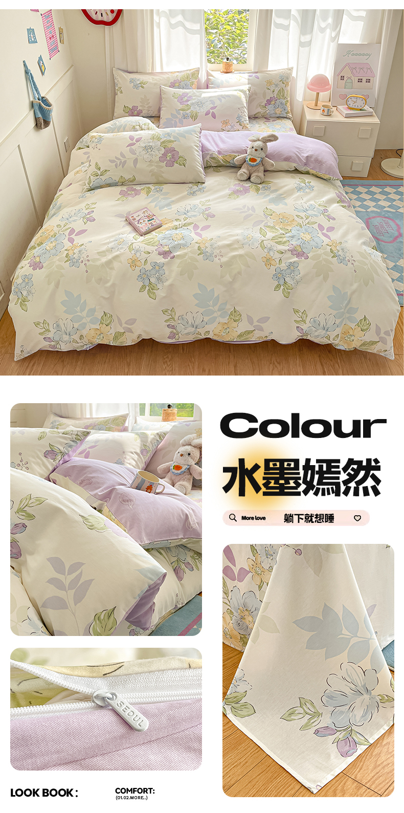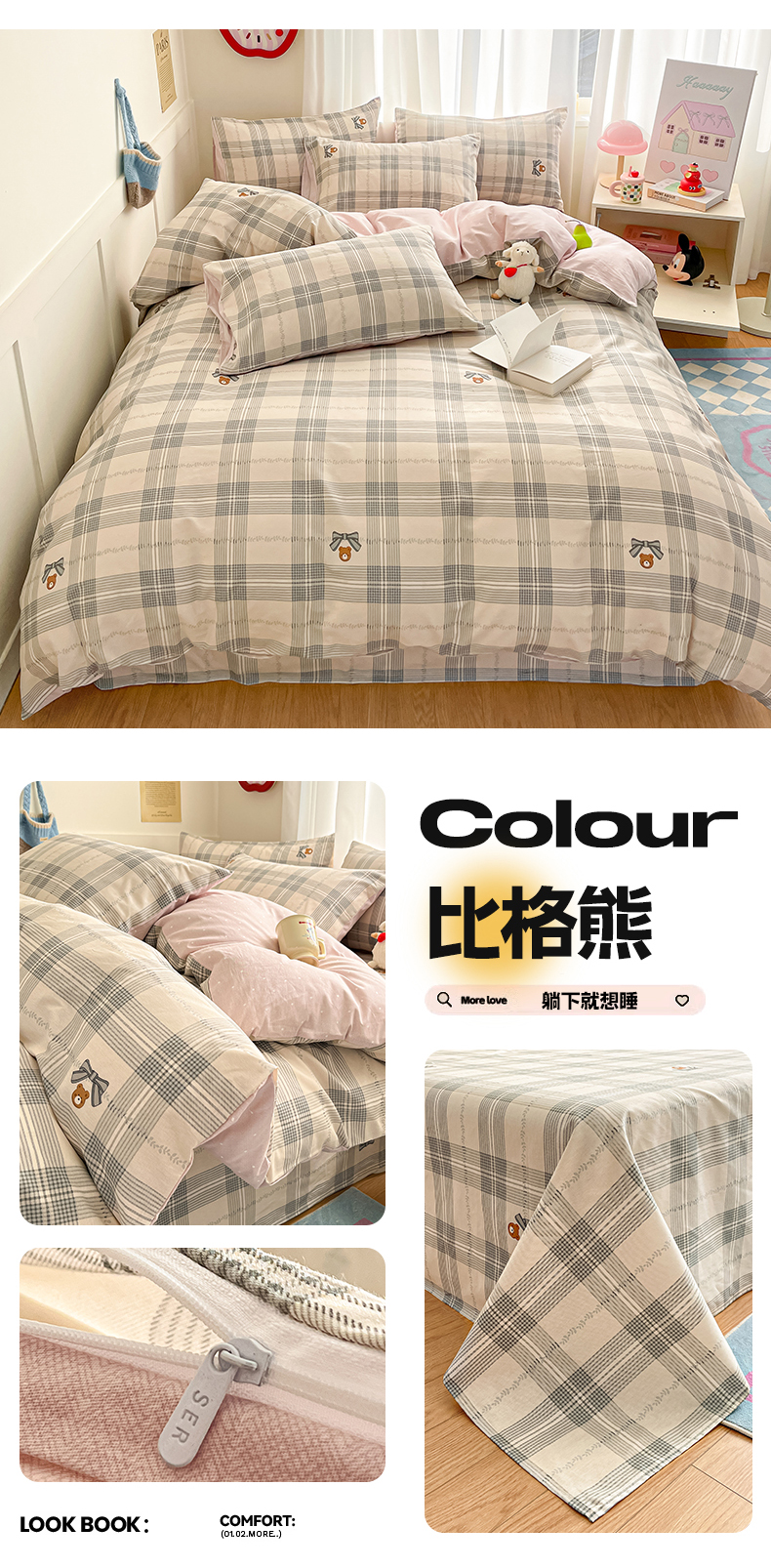 (总)首尔家纺 2026新款全棉纯棉小清新四件套,豹纹小熊,比格熊,波点蝴蝶结,丰收季节,果酱电台,蓝点豹纹,乐遥,玫瑰兔语,奶呼兔兔-米,盼夏少女,森遥,时尚恐龙,水墨嫣然,甜心可宠,香浮花月,小熊哈尼,芋泥小狗,月下小兔,中古小花熊