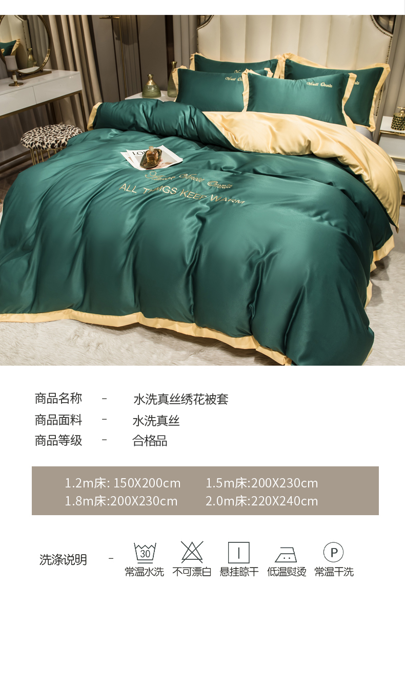 当前位置: 91家纺网 > 商品网购 > 床品套件 > 四件套 > 水洗真丝四件套 > 绒世界 2026新款水洗真丝盛夏系列四件套单被套四件套 宝石绿