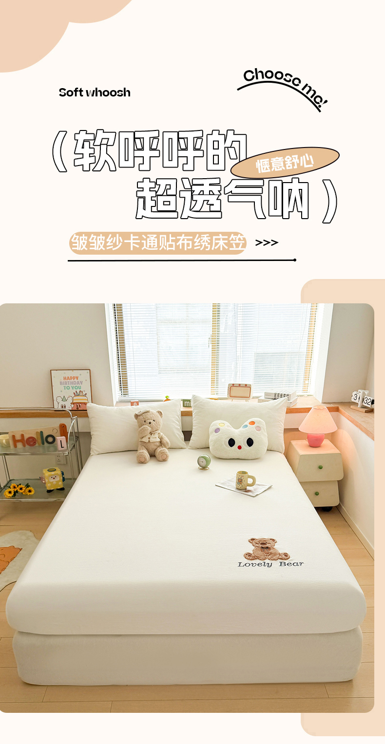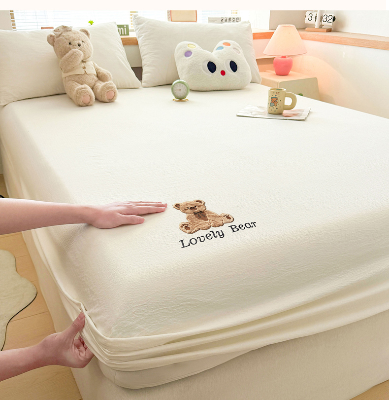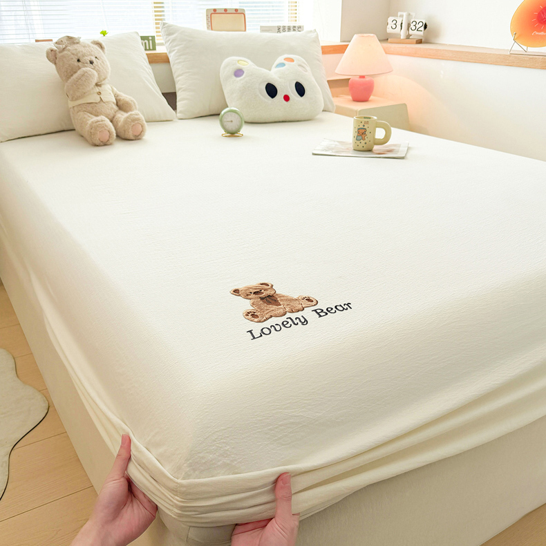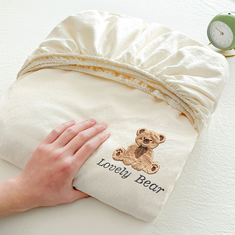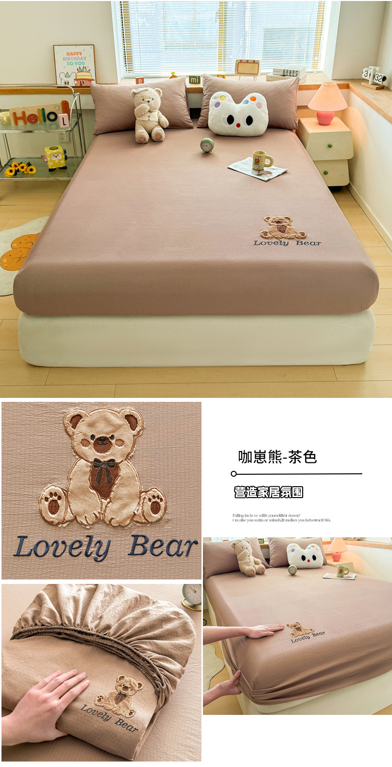 (总)爱思凯家纺 2026春夏新款皱皱纱卡通贴布绣单床笠 床笠单件-咖崽熊