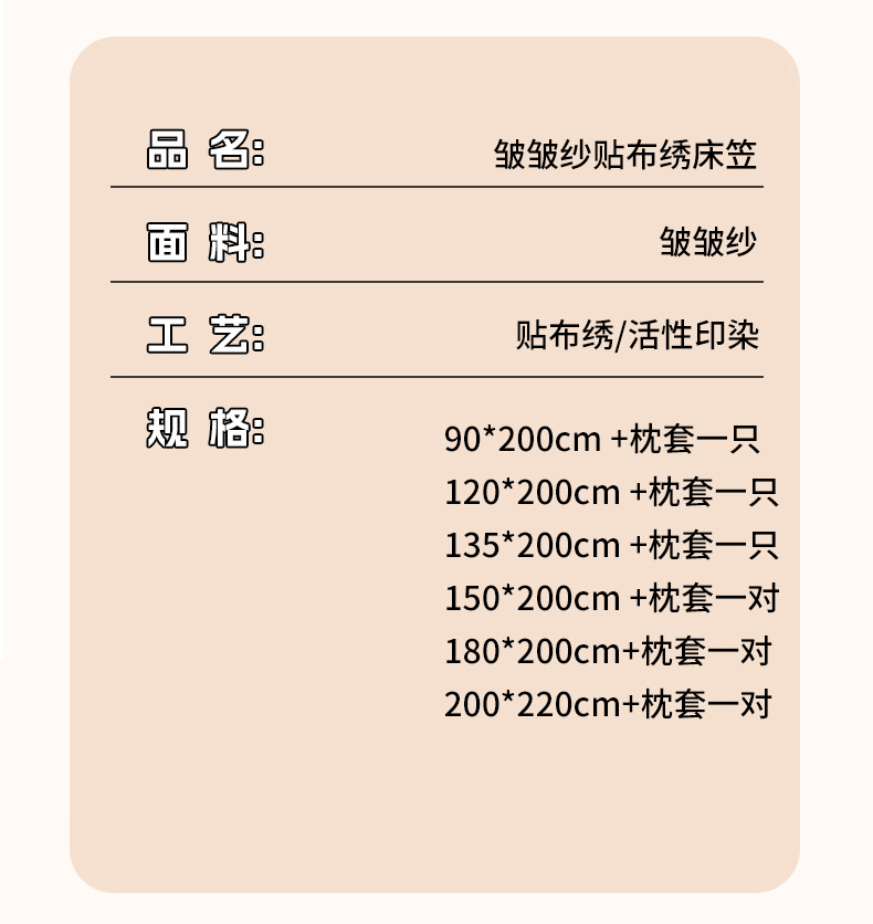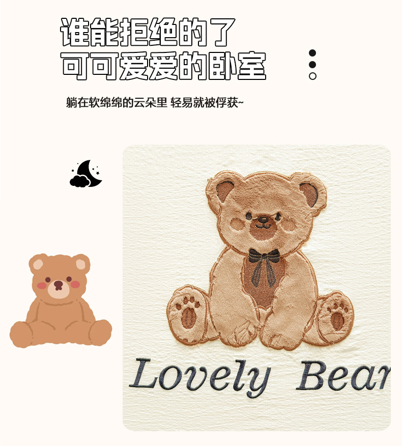 商品名称:(总)爱思凯家纺 2026春夏新款皱皱纱卡通贴布绣单床笠 床笠单件-咖崽熊