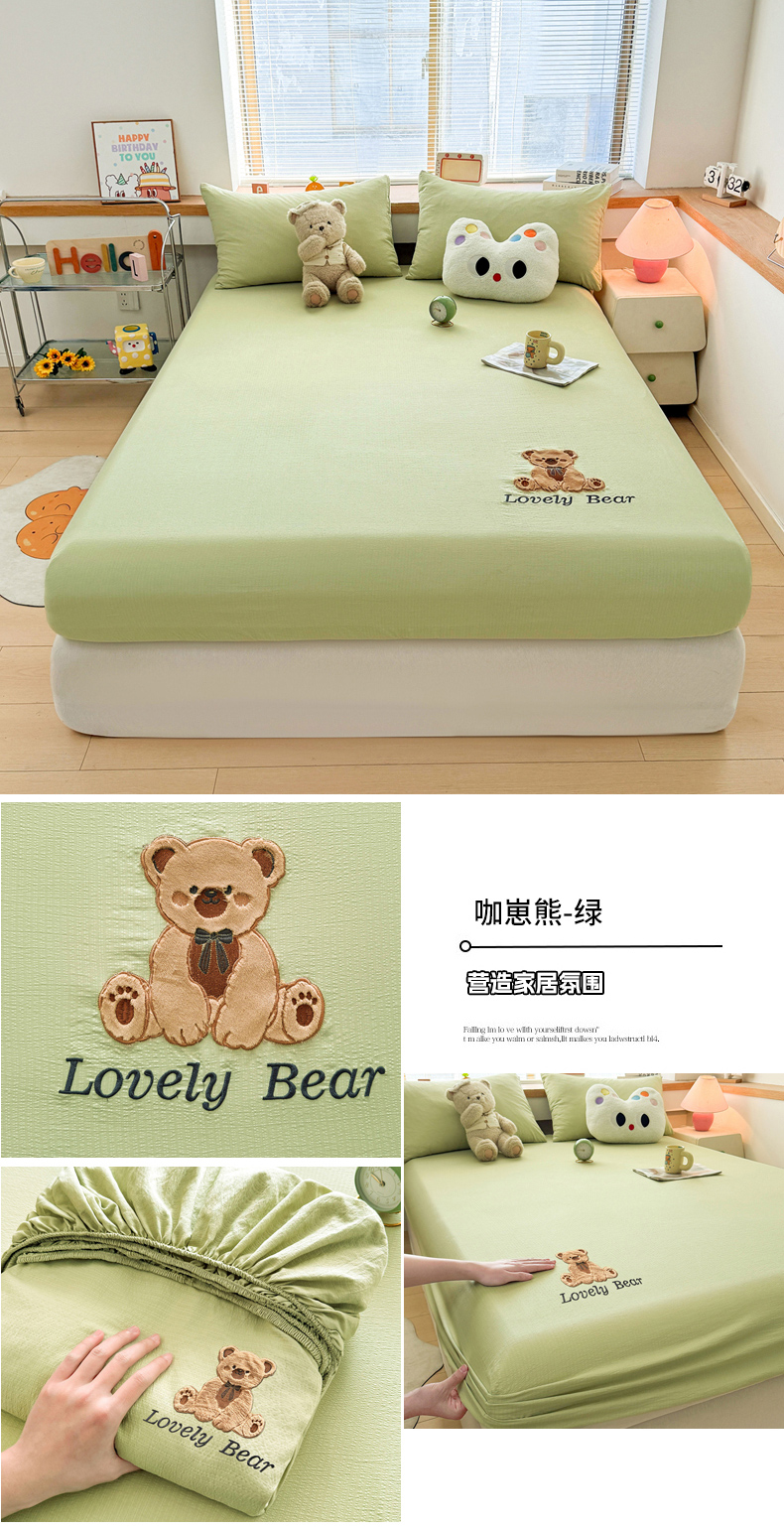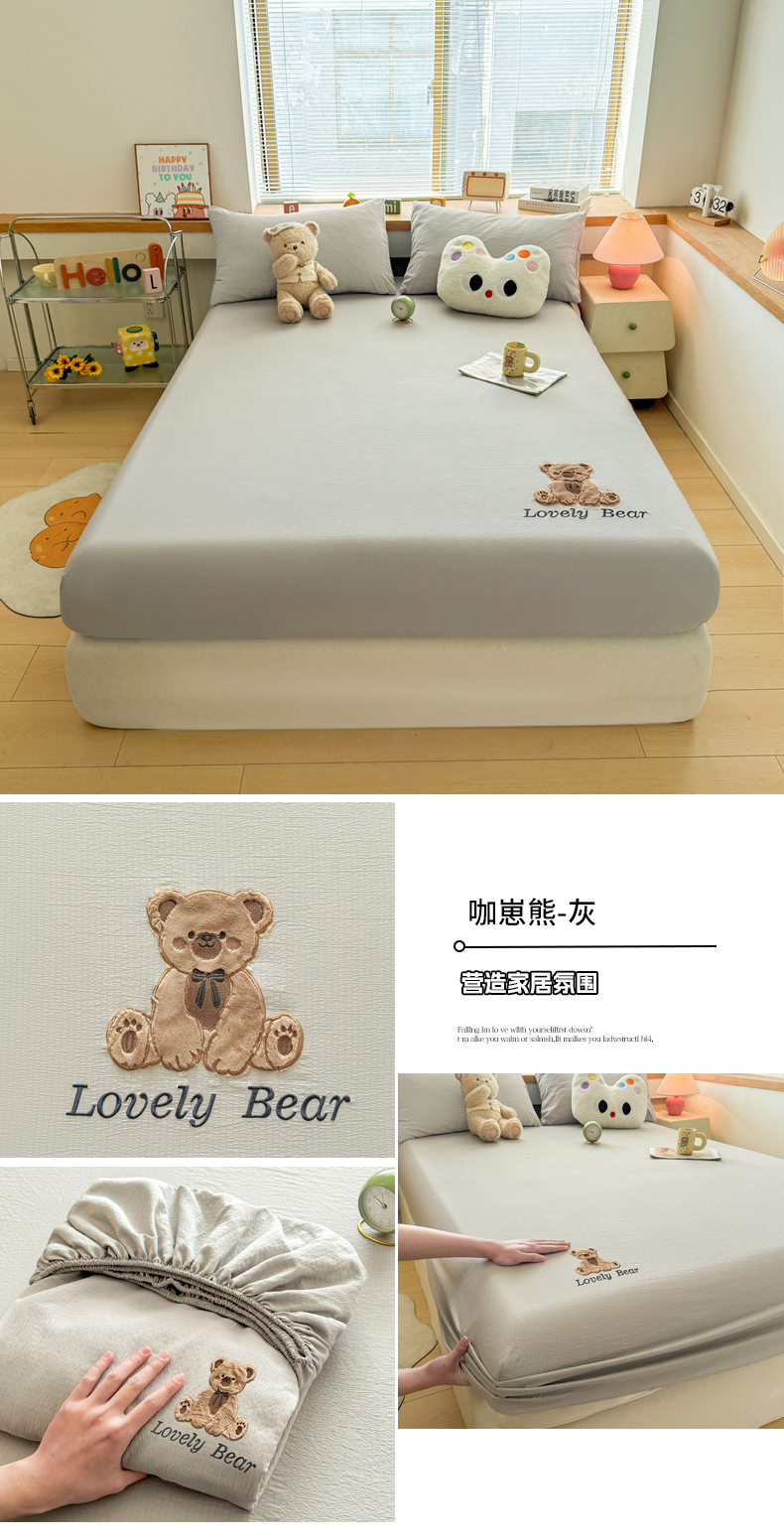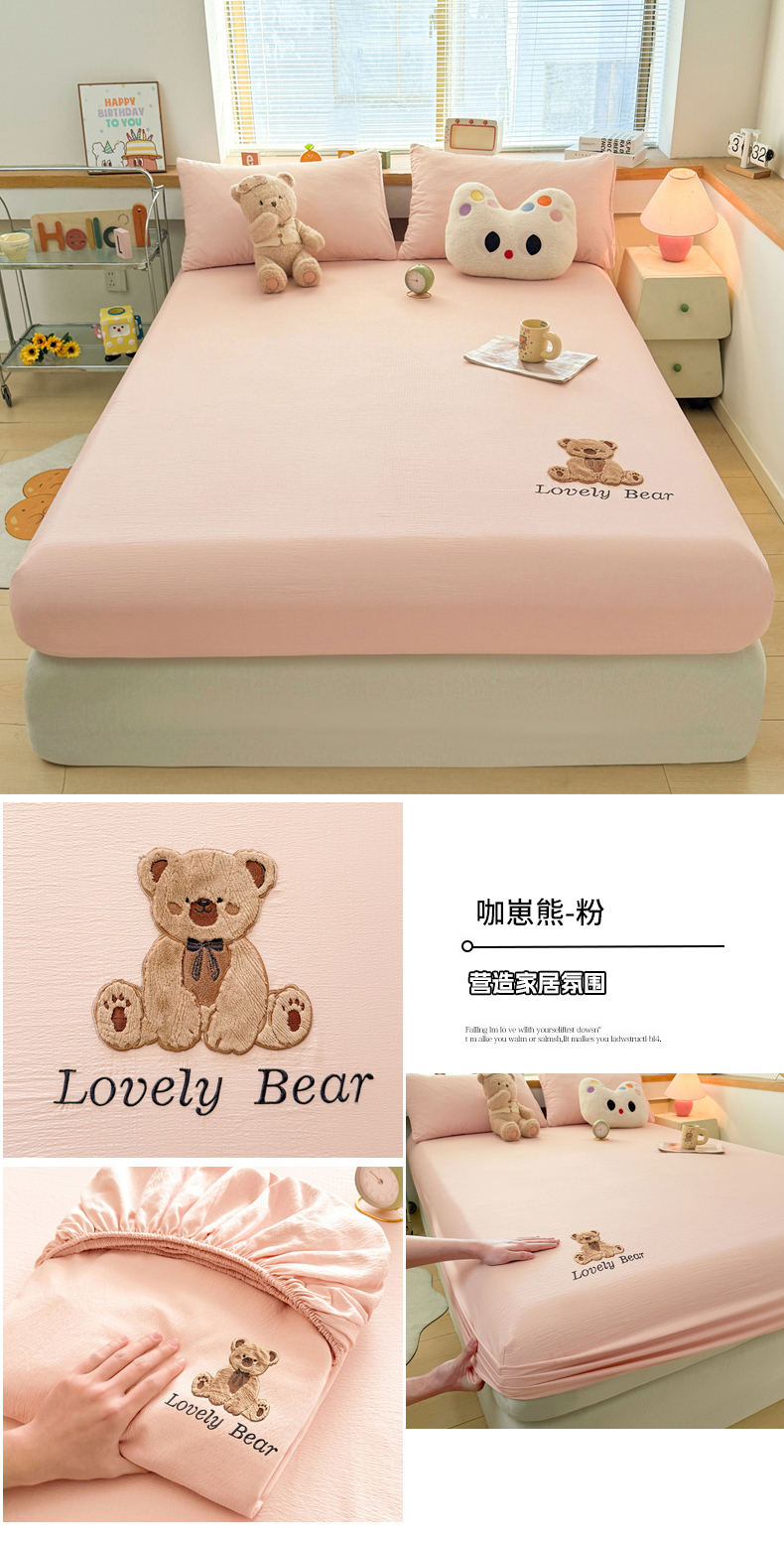 (总)爱思凯家纺 2025新款学生儿童房泡泡绒床单-松饼熊,松饼熊床单-卡其,松饼熊床单-粉,松饼熊床单-灰,松饼熊床单-蓝灰,松饼熊床单-绿,松饼熊床单-奶白