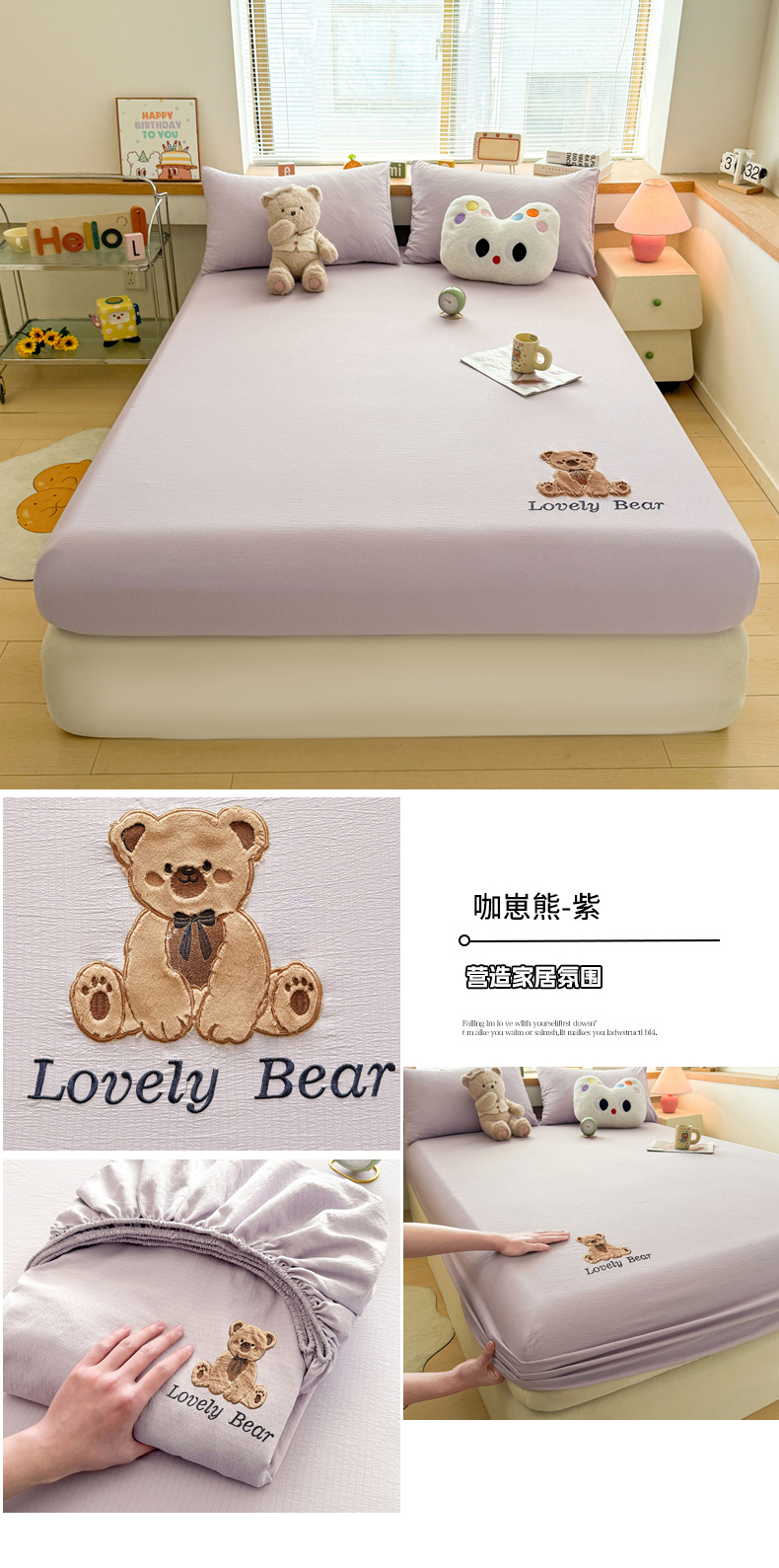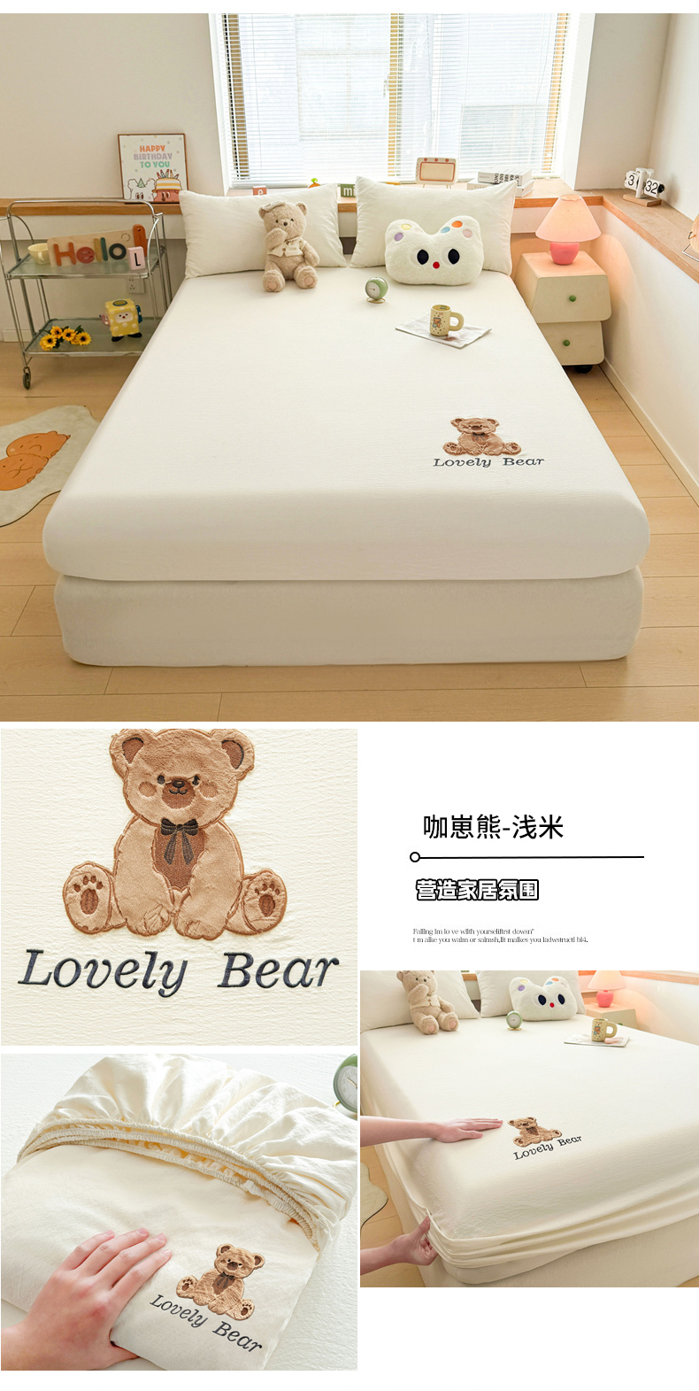 (总)爱思凯家纺 2025新款加厚泡泡绒纯色床笠-松饼熊,组合图,松饼熊床笠-奶白,松饼熊床笠-粉,松饼熊床笠-灰,松饼熊床笠-卡其,松饼熊床笠-蓝灰,松饼熊床笠-绿