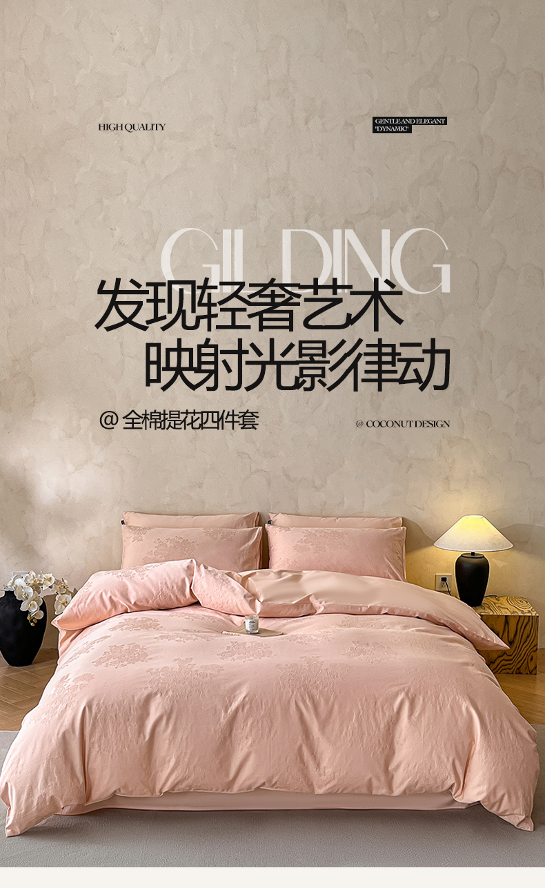 2026春夏新款全棉提花浮雕四件套 花夕-粉