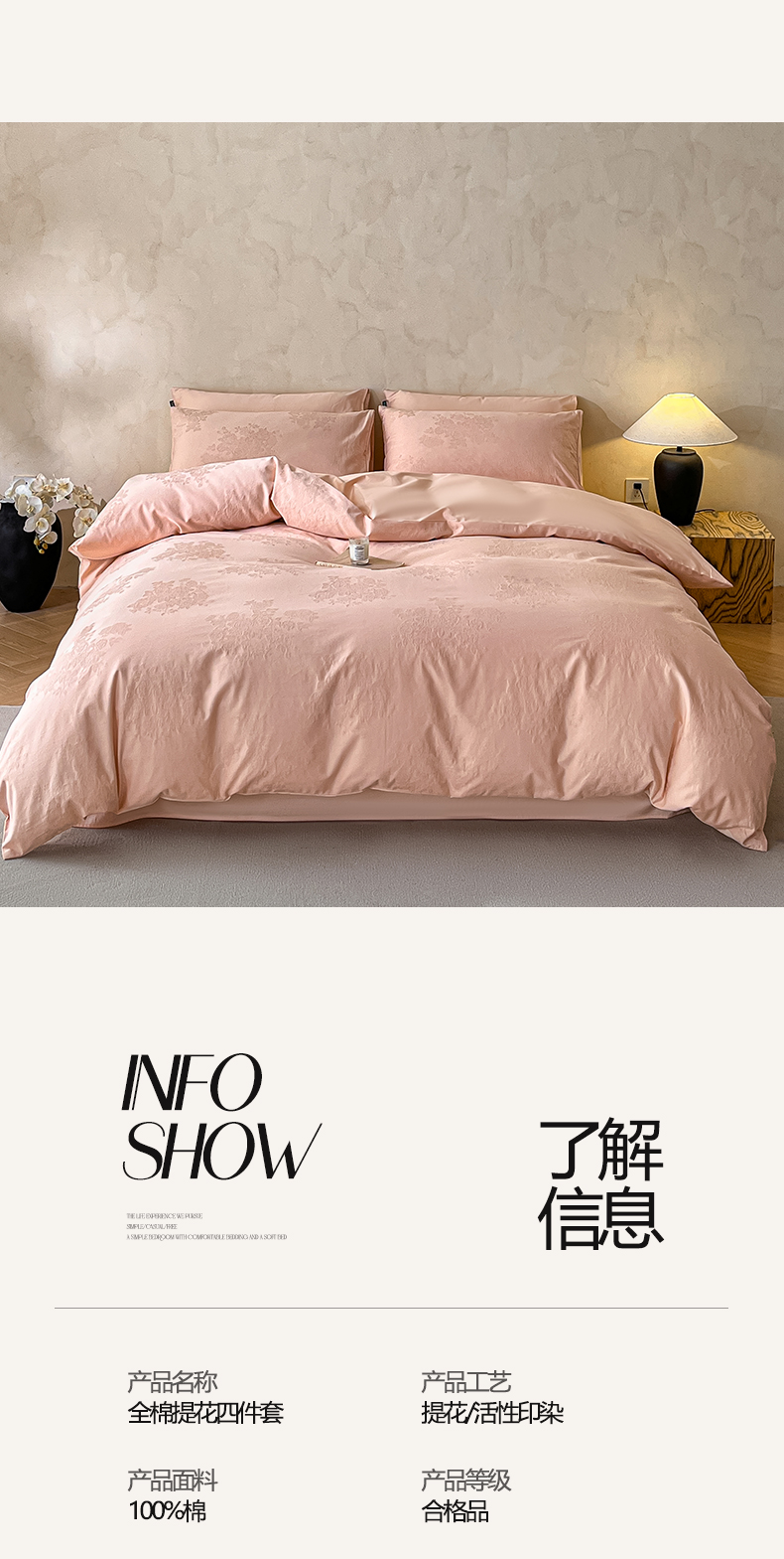 商品名称:2026春夏新款全棉提花浮雕四件套 花夕-粉