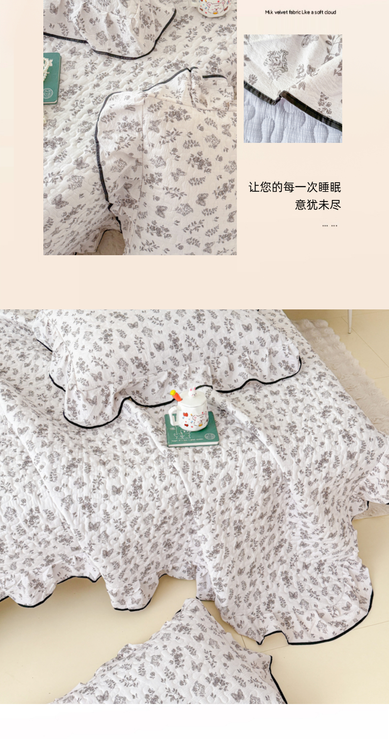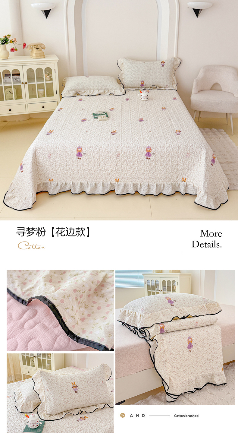 • 91家纺网 家纺一手货源 找家纺 999家纺 2026新款双层纱花边床盖单件加厚夹棉云感皱皱纱花边床单三件套四季跑量(提供买家秀) 浅画【花边款】