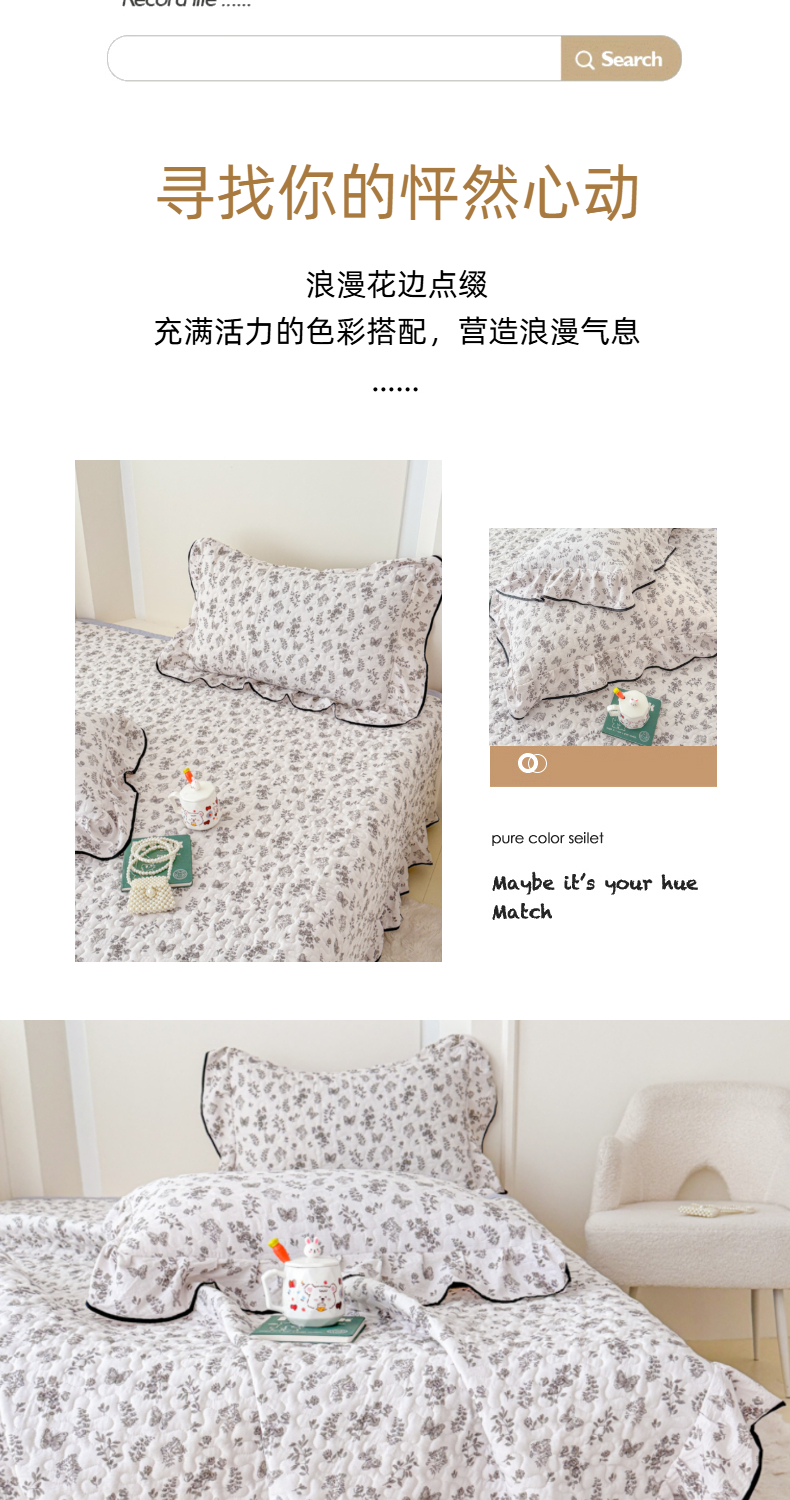 • 91家纺网 家纺一手货源 找家纺 (总)999家纺 2026新款双层纱花边床盖单件加厚夹棉云感皱皱纱花边床单三件套四季跑量(提供买家秀),初见【花边款】,春天里【花边款】,蝶恋花【花边款】,蝴蝶梦【花边款】,花影【花边款】,静初【花边款】,兰黛【花边款】,漫花【花边款】,木兮【花边款】,慕情【花边款】,浅画【花边款】,寻梦粉【花边款】,寻梦紫【花边款】,樱桃格【花边款】,紫韵【花边款】
