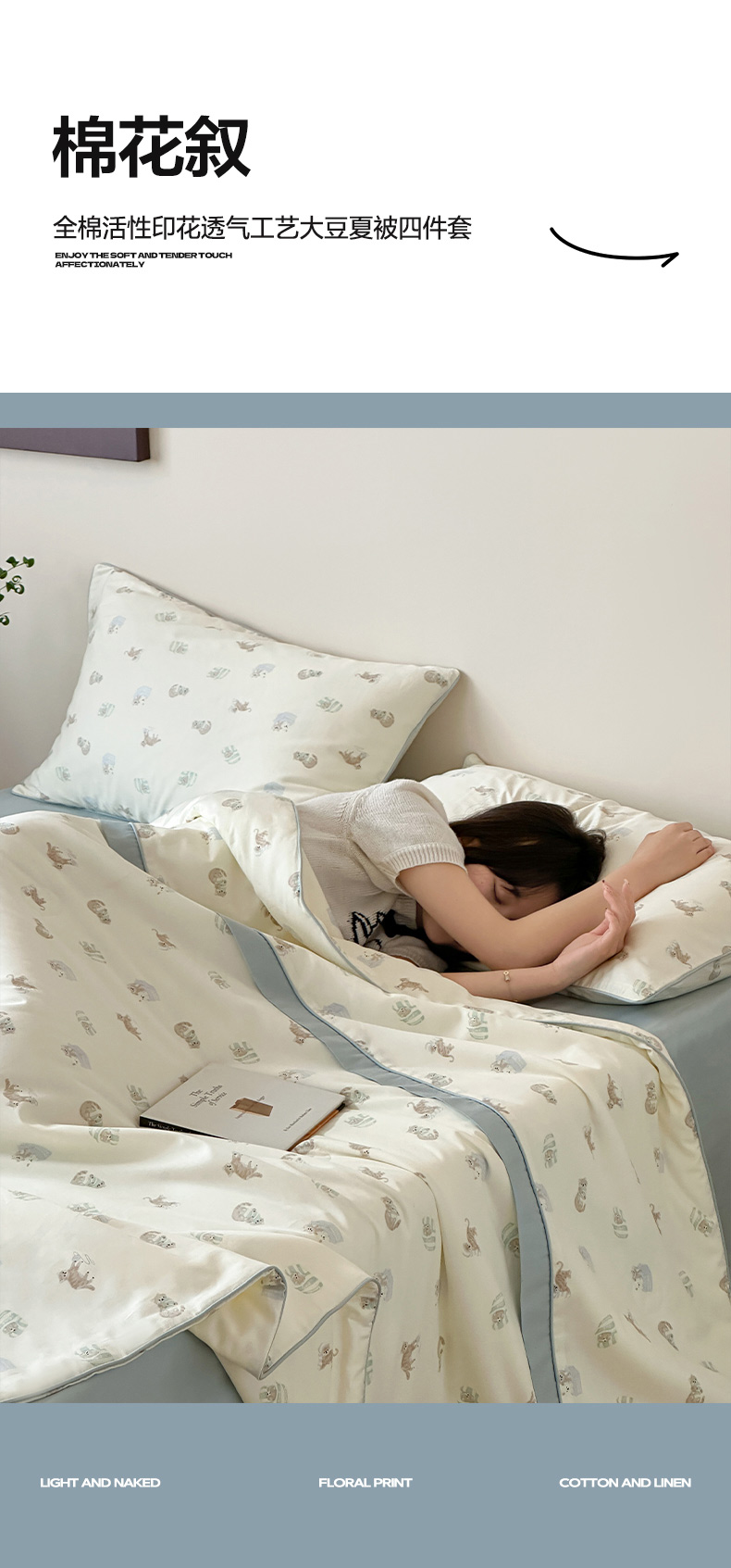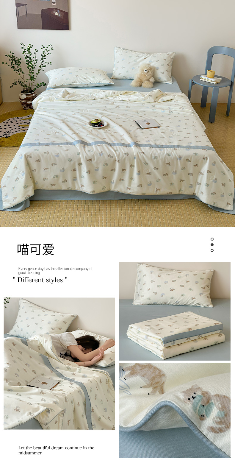 • 91家纺网 家纺一手货源 找家纺 一加一 2026新款活性印花透气工艺大豆夏被夏凉被空调被四件套-棉花叙 喵可爱
