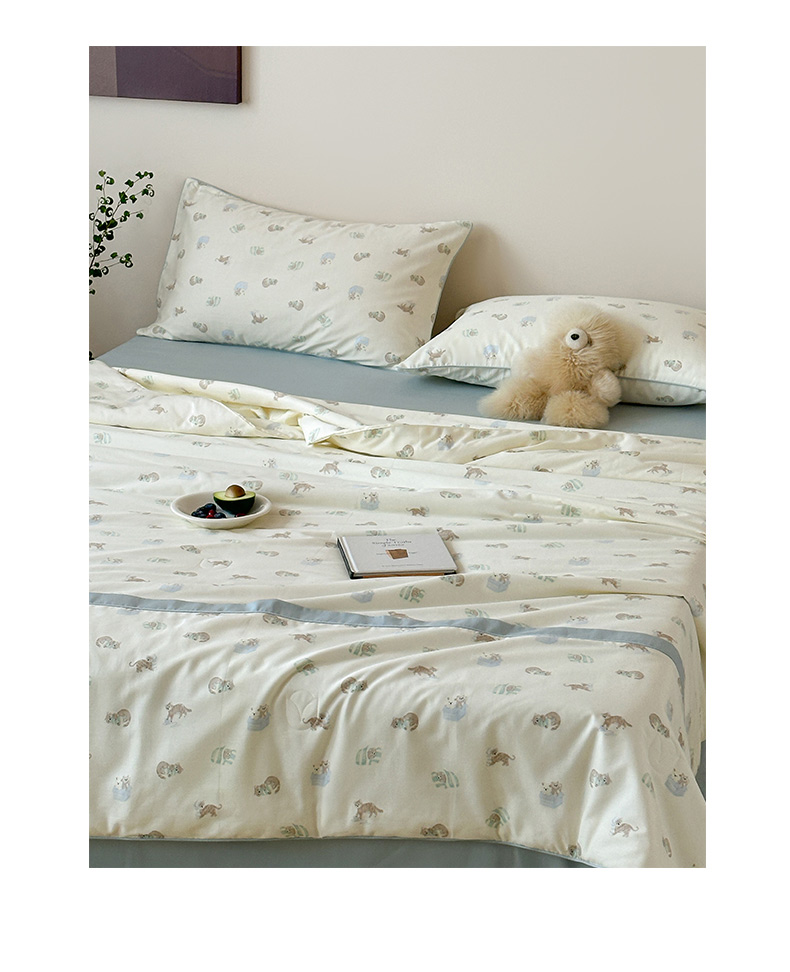一加一 2026新款活性印花透气工艺大豆夏被夏凉被空调被四件套-棉花叙 喵可爱