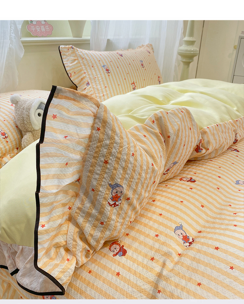 (总)优贝家纺 2026新款云感双层纱皱皱纱花边四件套,星星人,花香,马马福福,马马福福-咖,春日花园,可爱熊,奇奇乐园,甜心时光,小花蝴蝶结,小马乐园,小美好,星雪人,悠然小花