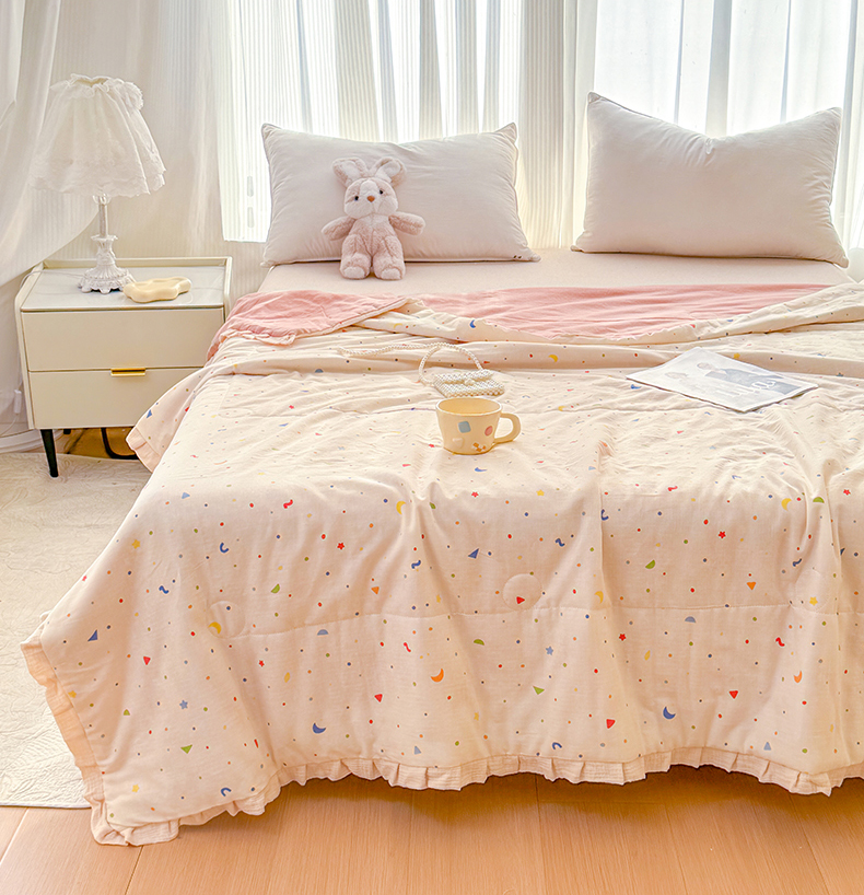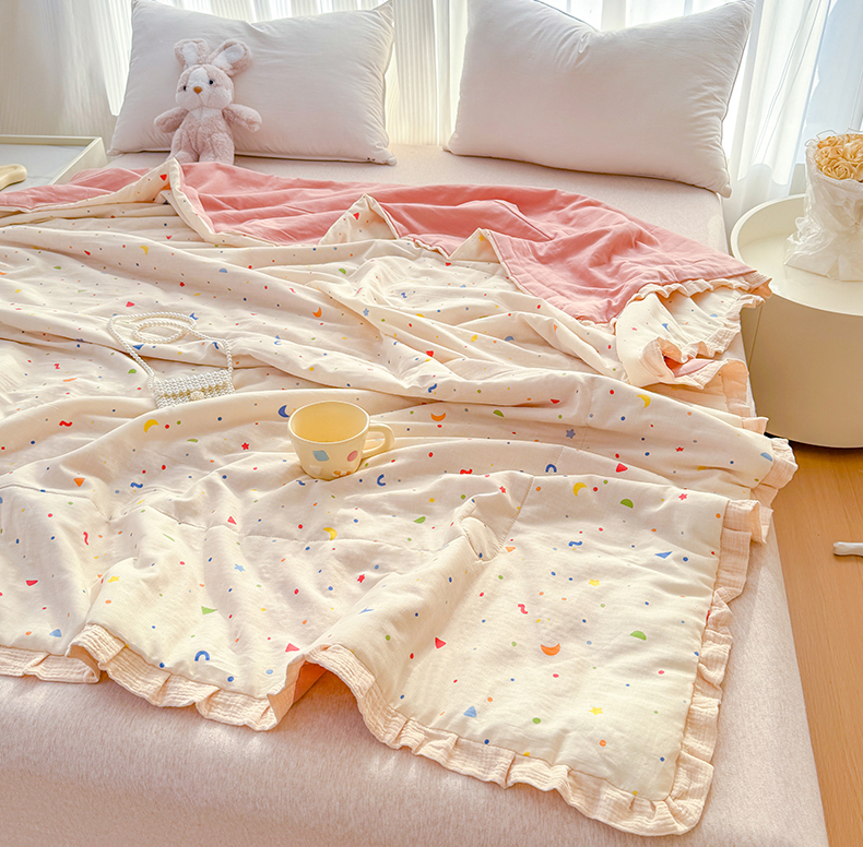 疆东 2026新款韩版花边A类全棉双层纱单夏被 配包装 油画