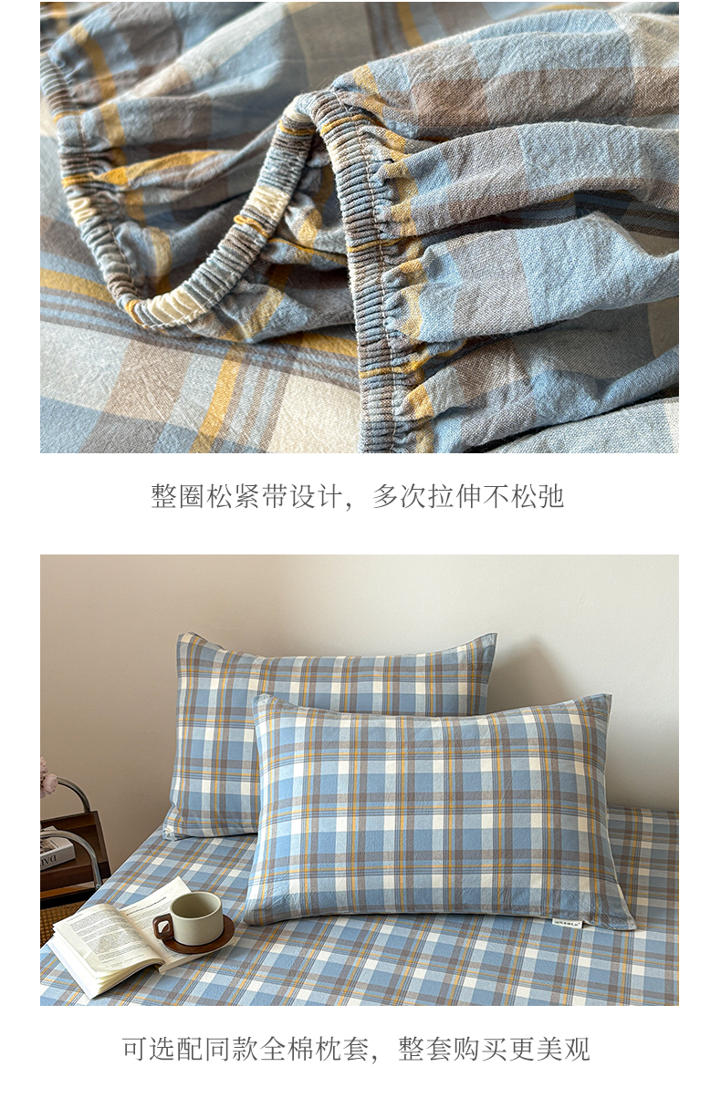 居眠 2026新款单层色织水洗格子全棉床笠 单层款-瑞土兰
