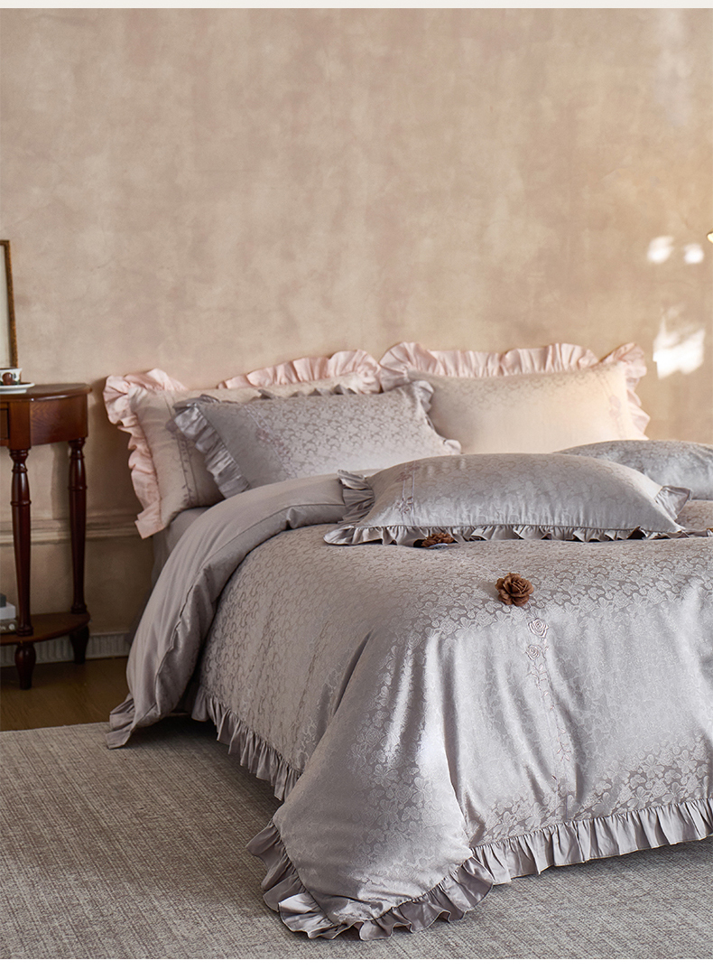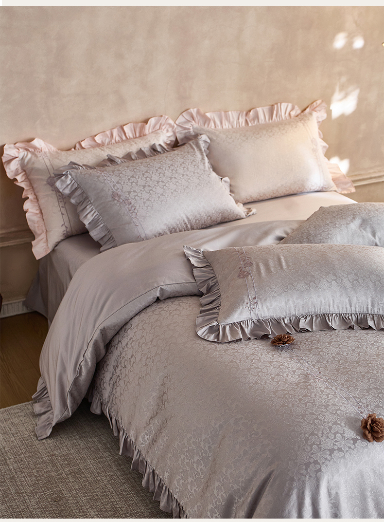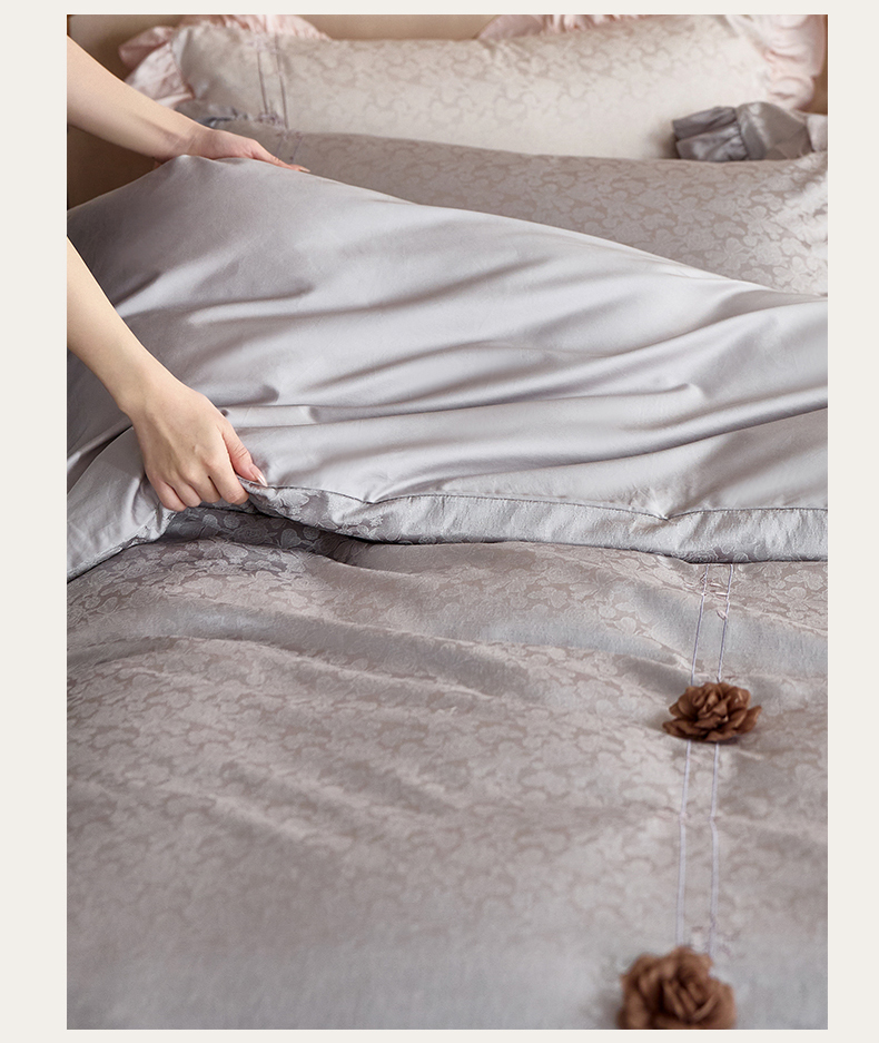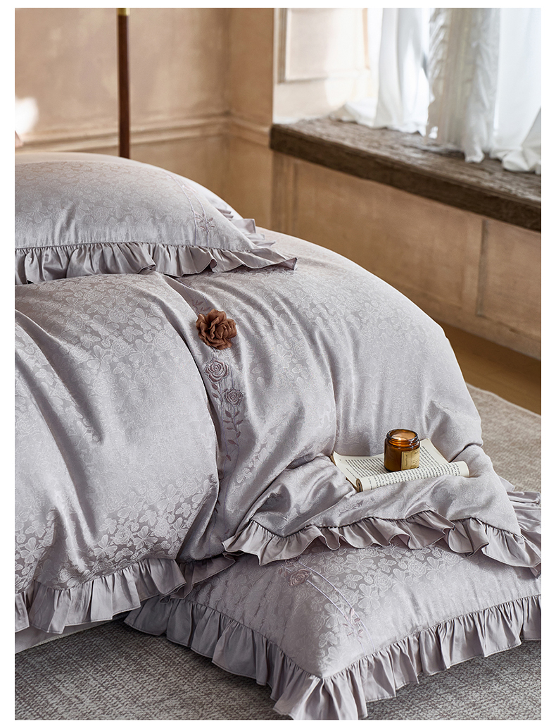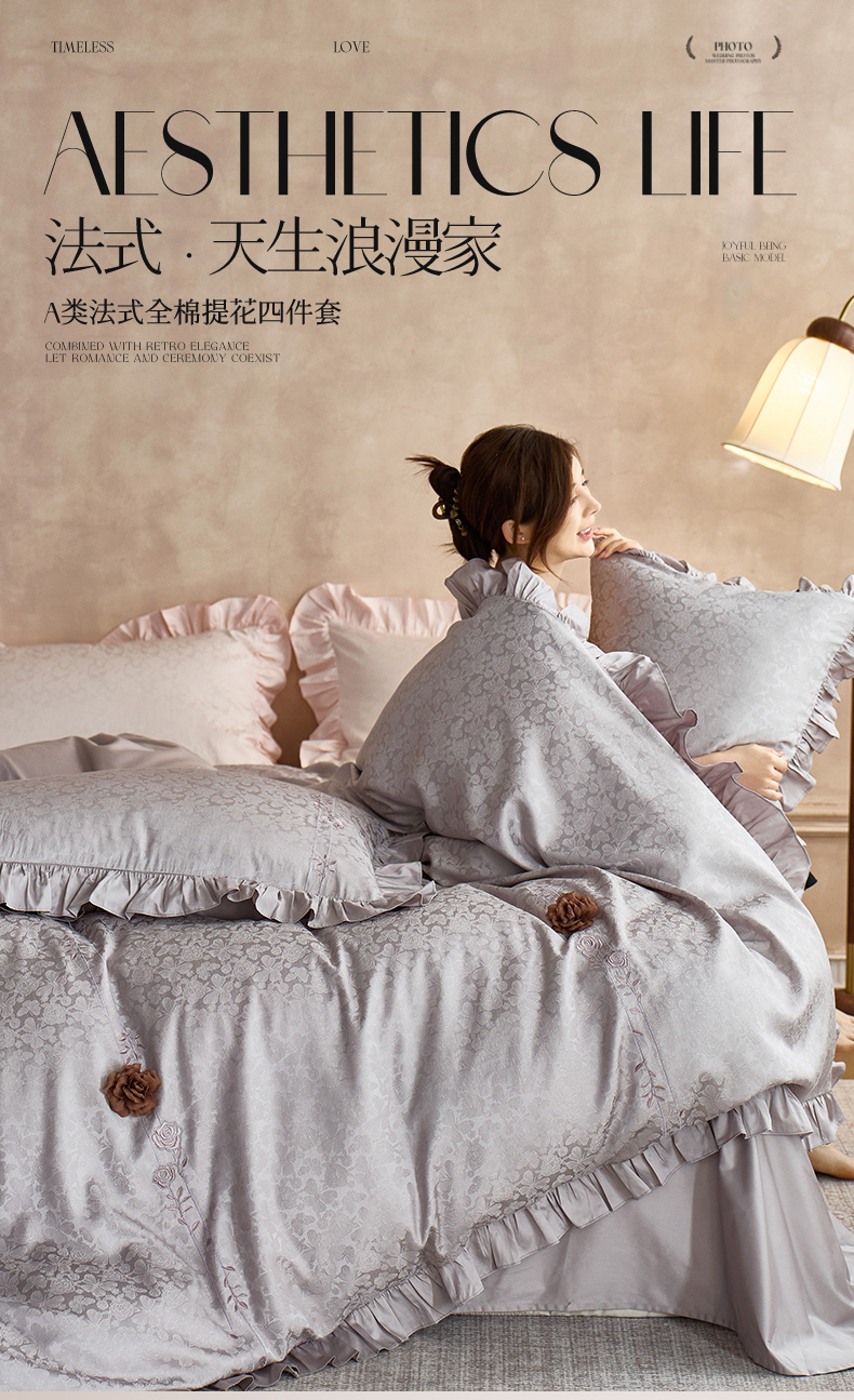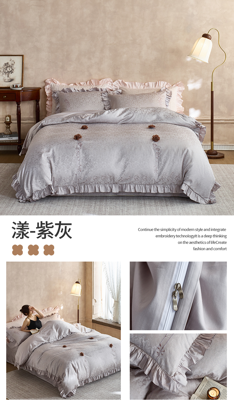 商品名称:鼎飞家纺 2026新款A类法式全棉提花四件套-漾系列 漾-紫灰