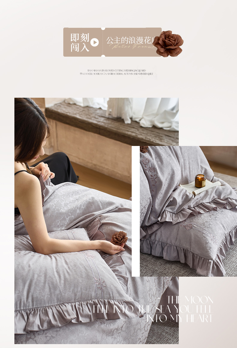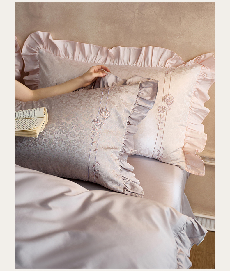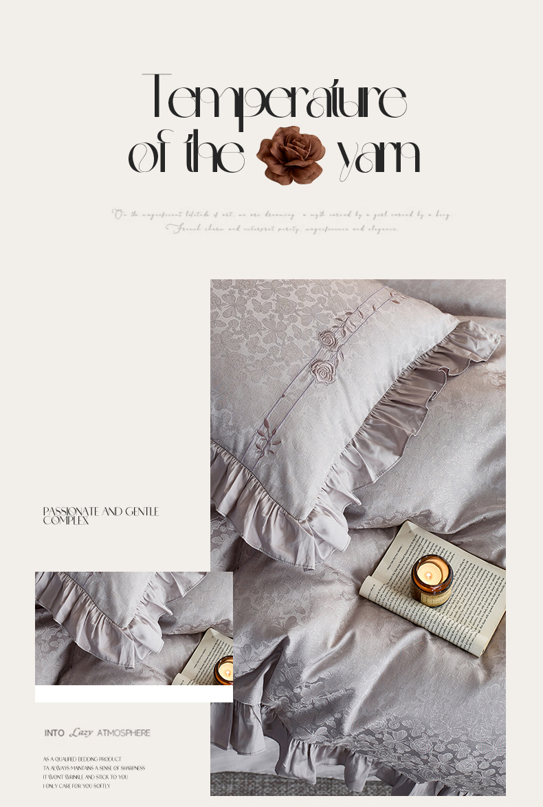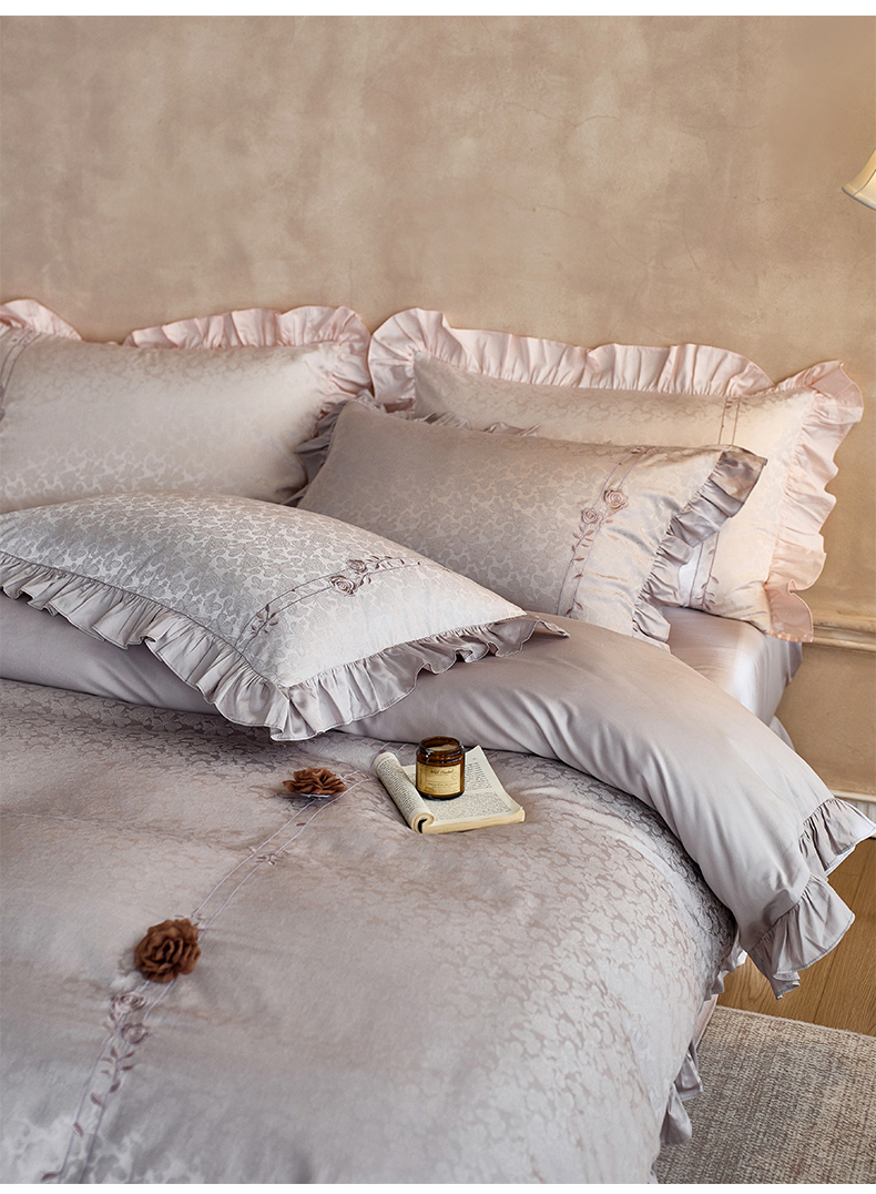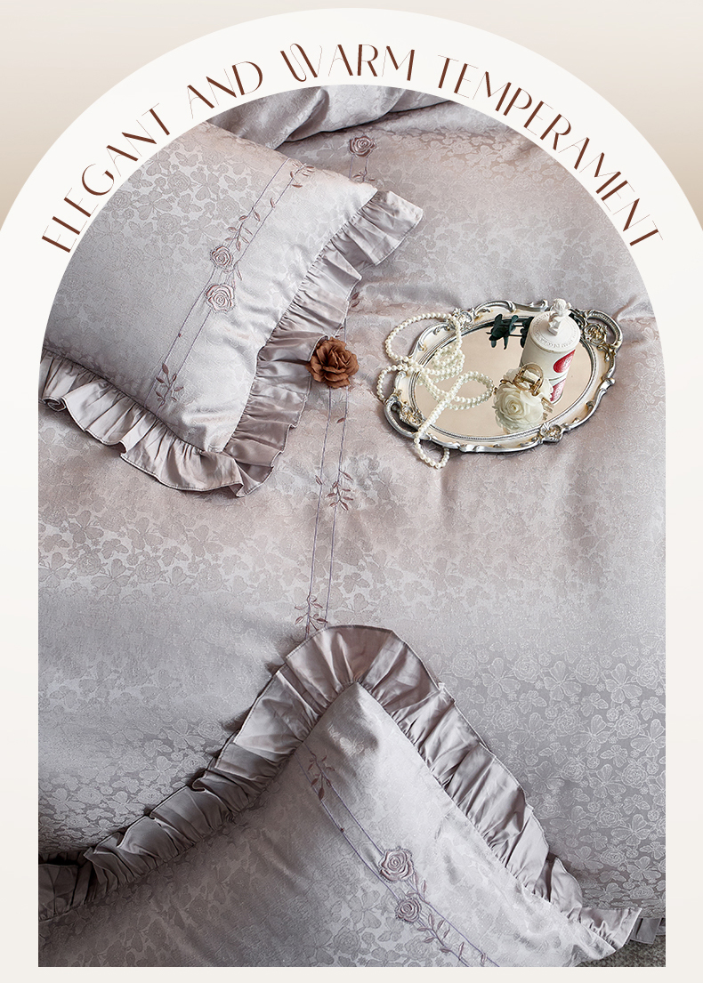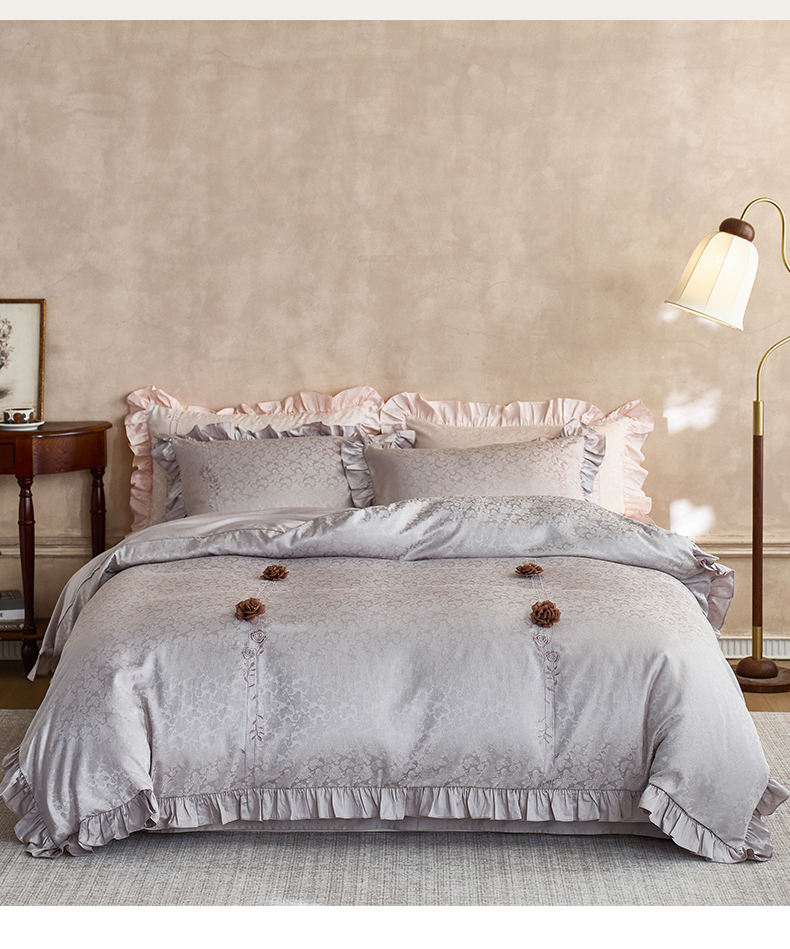 商品名称:鼎飞家纺 2026新款A类法式全棉提花四件套-漾系列 漾-紫灰