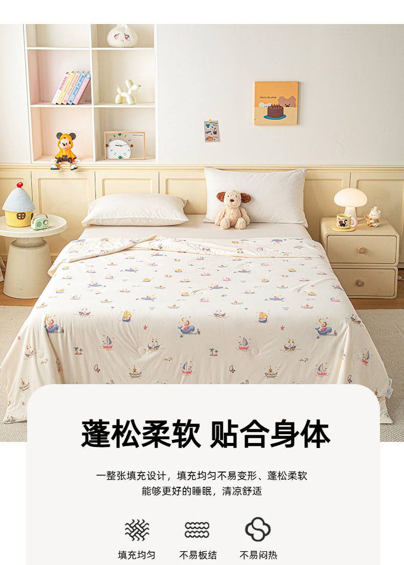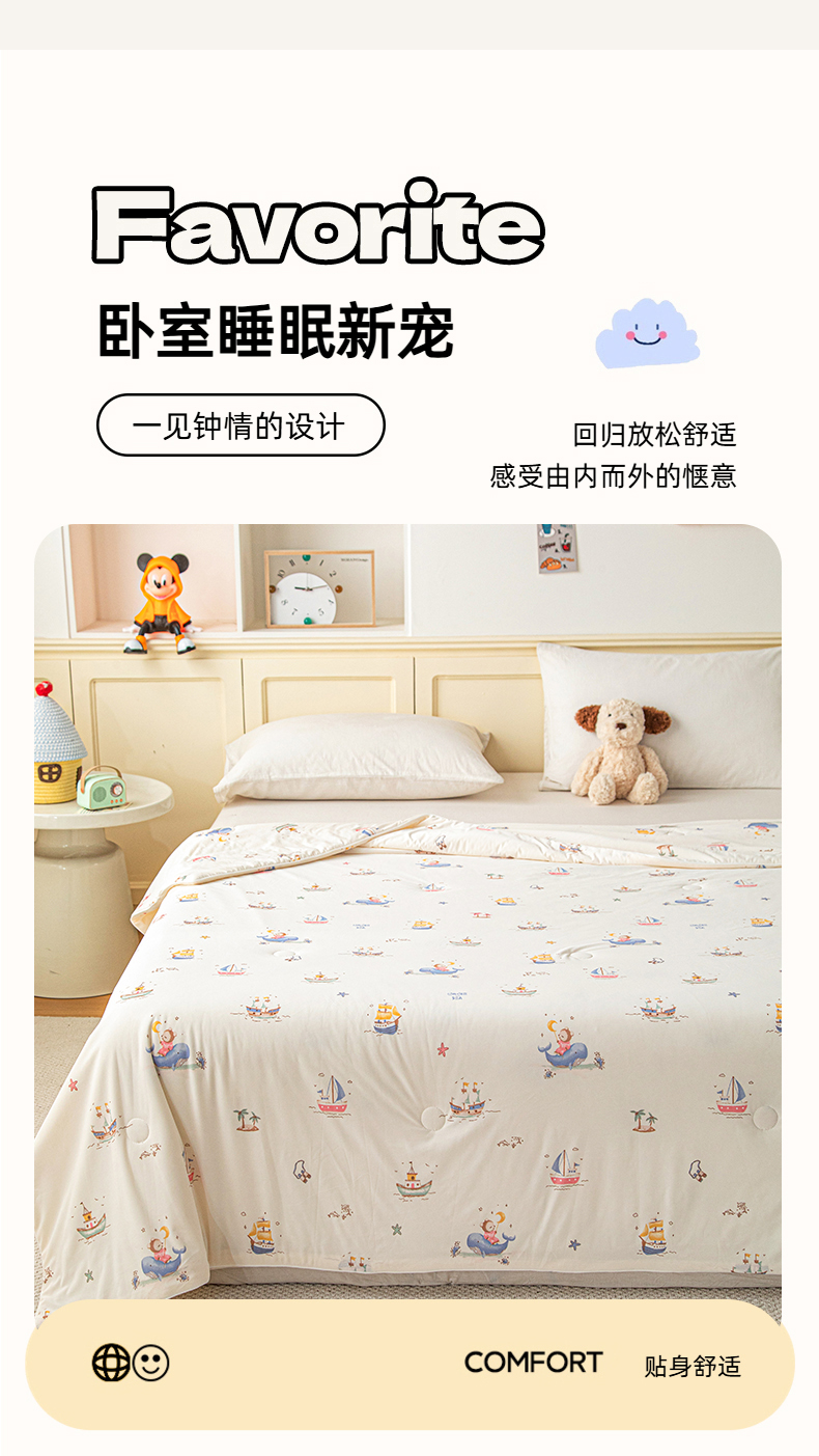 (总)亿莱鑫 2026春夏新款卡通印花仿锦氨夏被夏凉被空调被,彩绘小熊,格纹小象,蘑菇熊屋,树屋熊趣,甜品聚会,星梦萌友,星星小象,熊仔面包店