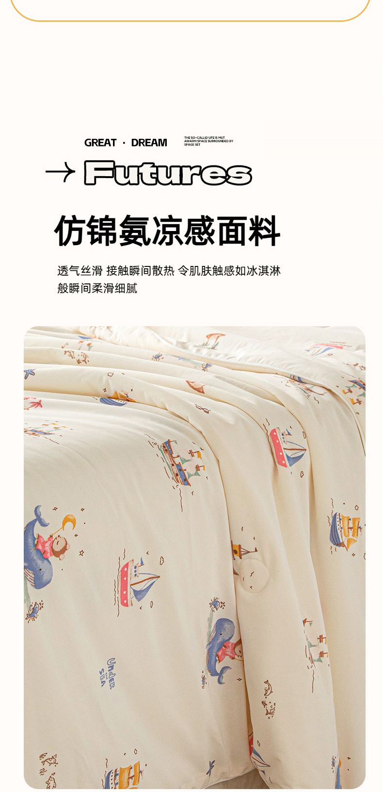 商品名称:亿莱鑫 2026春夏新款数码印花仿锦氨夏被夏凉被空调被 鲸帆童梦