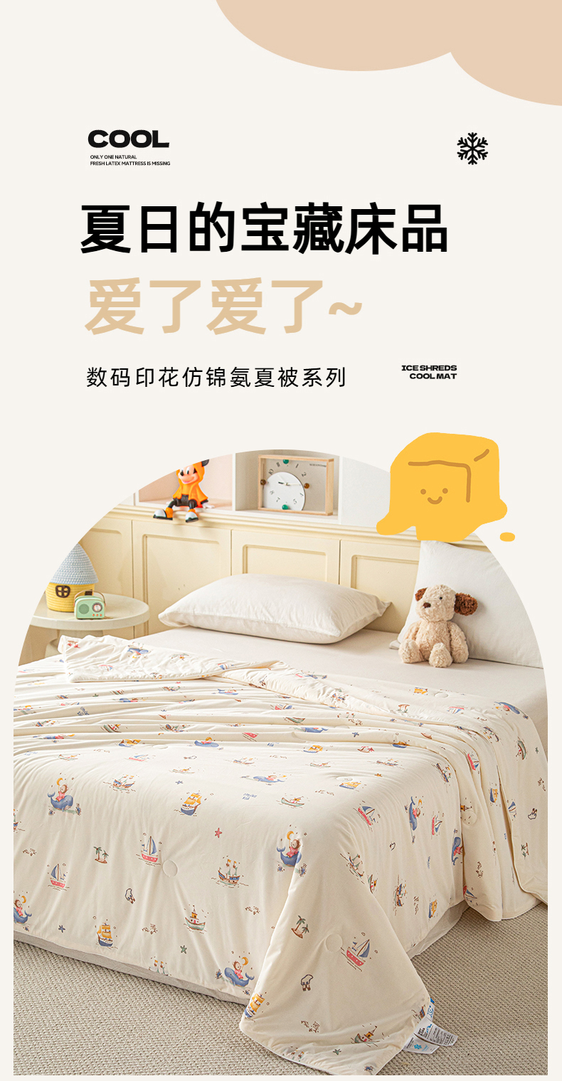 亿莱鑫 2026春夏新款数码印花仿锦氨夏被夏凉被空调被 鲸帆童梦