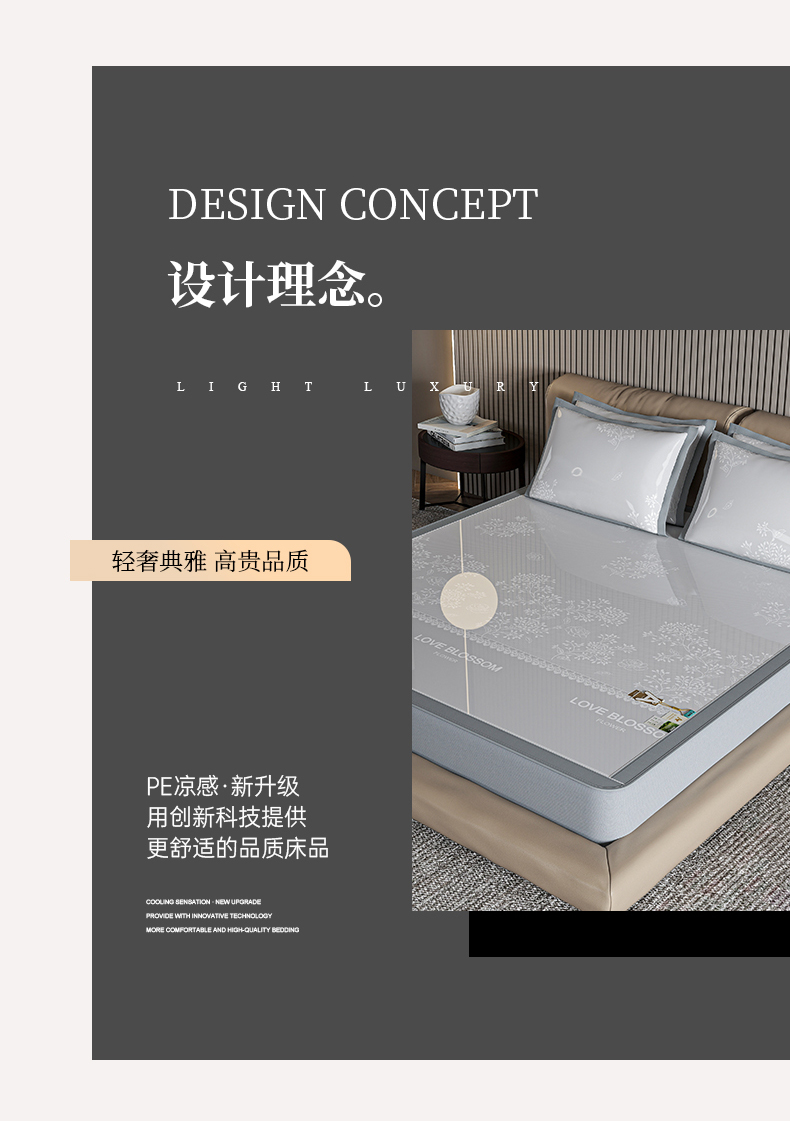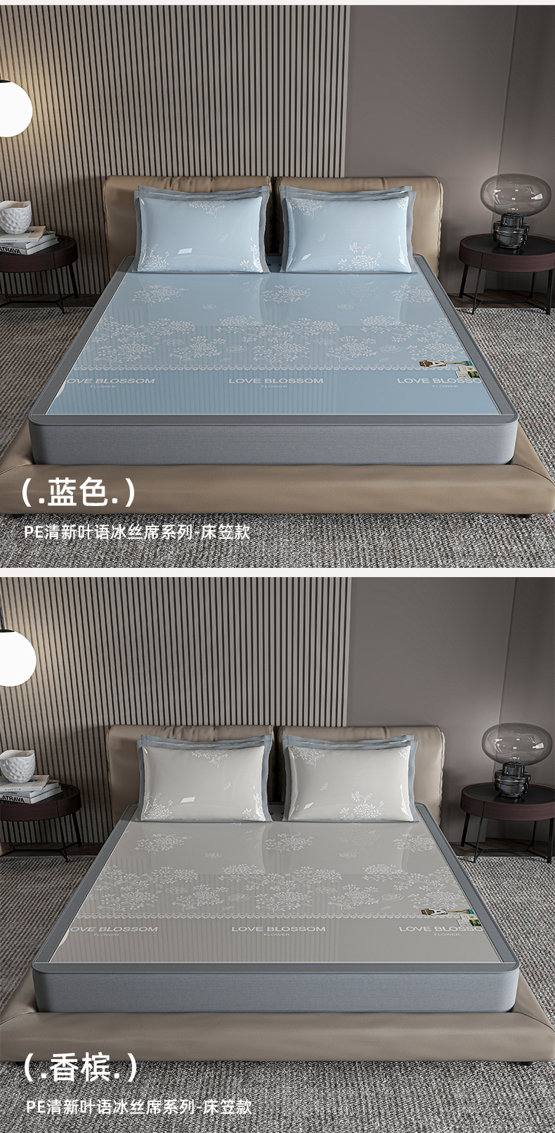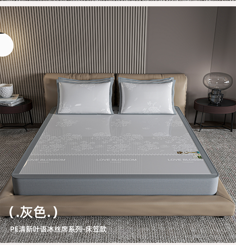 (总)小牛席业 2026春夏新款【实拍风格】PE凉感凉席席子-轻奢赫本(床笠款),轻奢赫本-灰色,轻奢赫本-粉色,轻奢赫本-蓝色,轻奢赫本-香槟