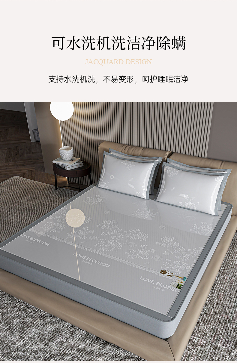 (总)小牛席业 2026春夏新款【实拍风格】PE凉感小碎花提花冰丝席,灰色,粉色,蓝色,抹茶,香槟