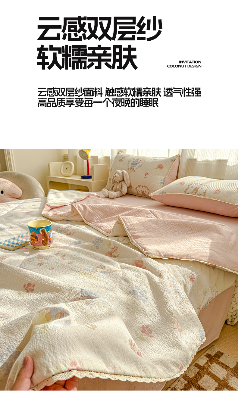 (总)贝扬思家纺 2026新款云感双层纱抗菌花边夏被-晴风系列,晴风-春日小花,晴风-动物游园,晴风-海盐汤圆,晴风-花漾集,晴风-镜子里的兔,晴风-困蝶,晴风-浪漫兔兔,晴风-梦境之间,晴风-葡萄多多,晴风-俏皮狗,晴风-清风与雾蓝,晴风-晴天小猫,晴风-苏瑾,晴风-甜橙花事,晴风-童话花岛,晴风-童年木马,晴风-像素小猫,晴风-序曲粉,晴风-薰衣草,晴风-樱桃奶球,晴风-摘星,晴风-竹歆花语