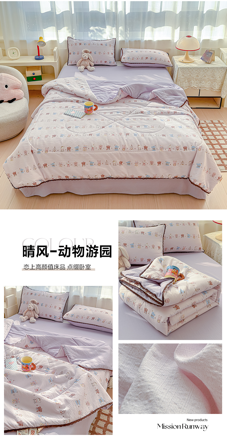 商品名称:贝扬思家纺 2026新款云感双层纱抗菌花边夏被-晴风系列 晴风-动物游园