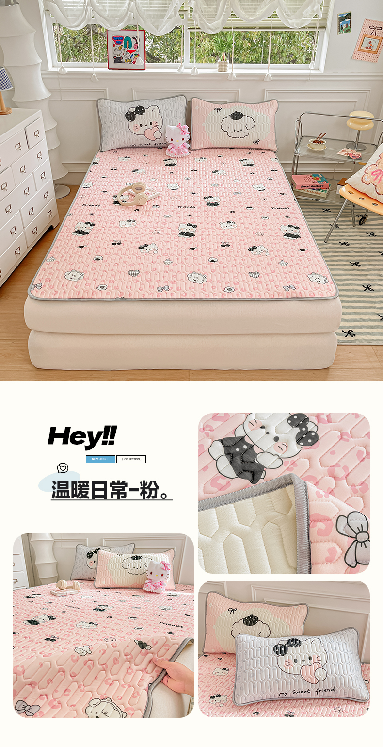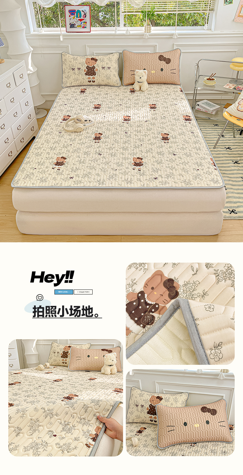 (总)摩妮卡 2026新款水洗棉夹棉防水刺绣爱心床褥床垫款三件套,爱心-奶白,爱心-撑粉,爱心-卡其,爱心-天蓝
