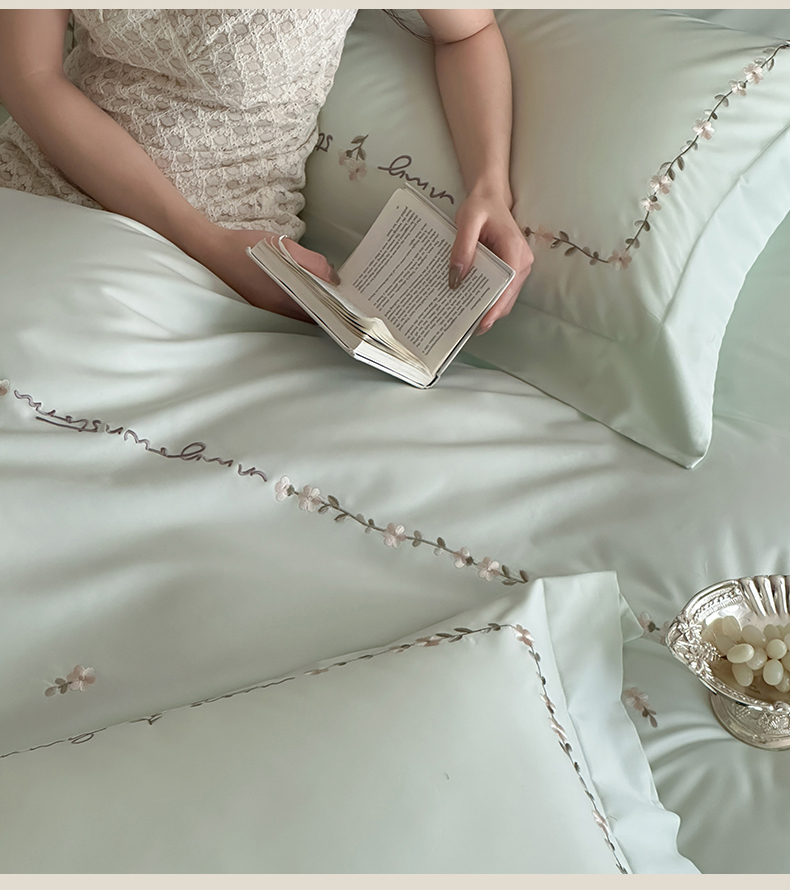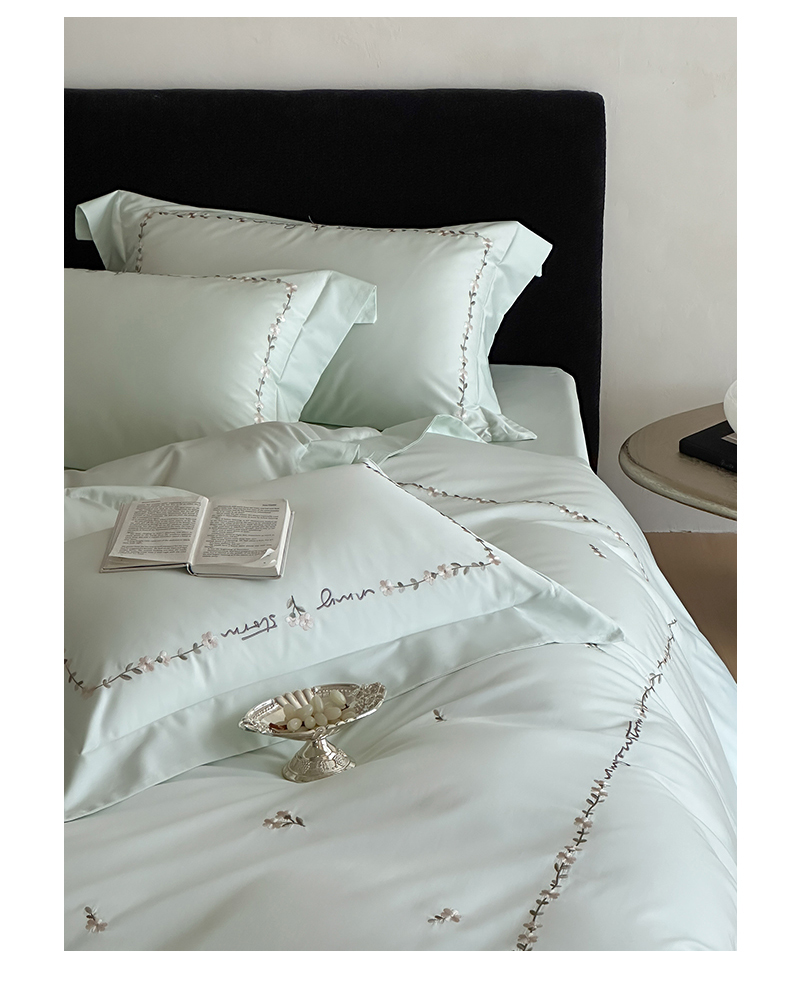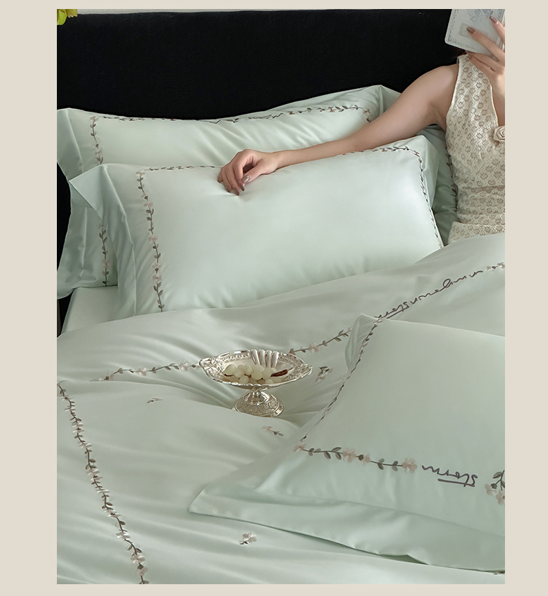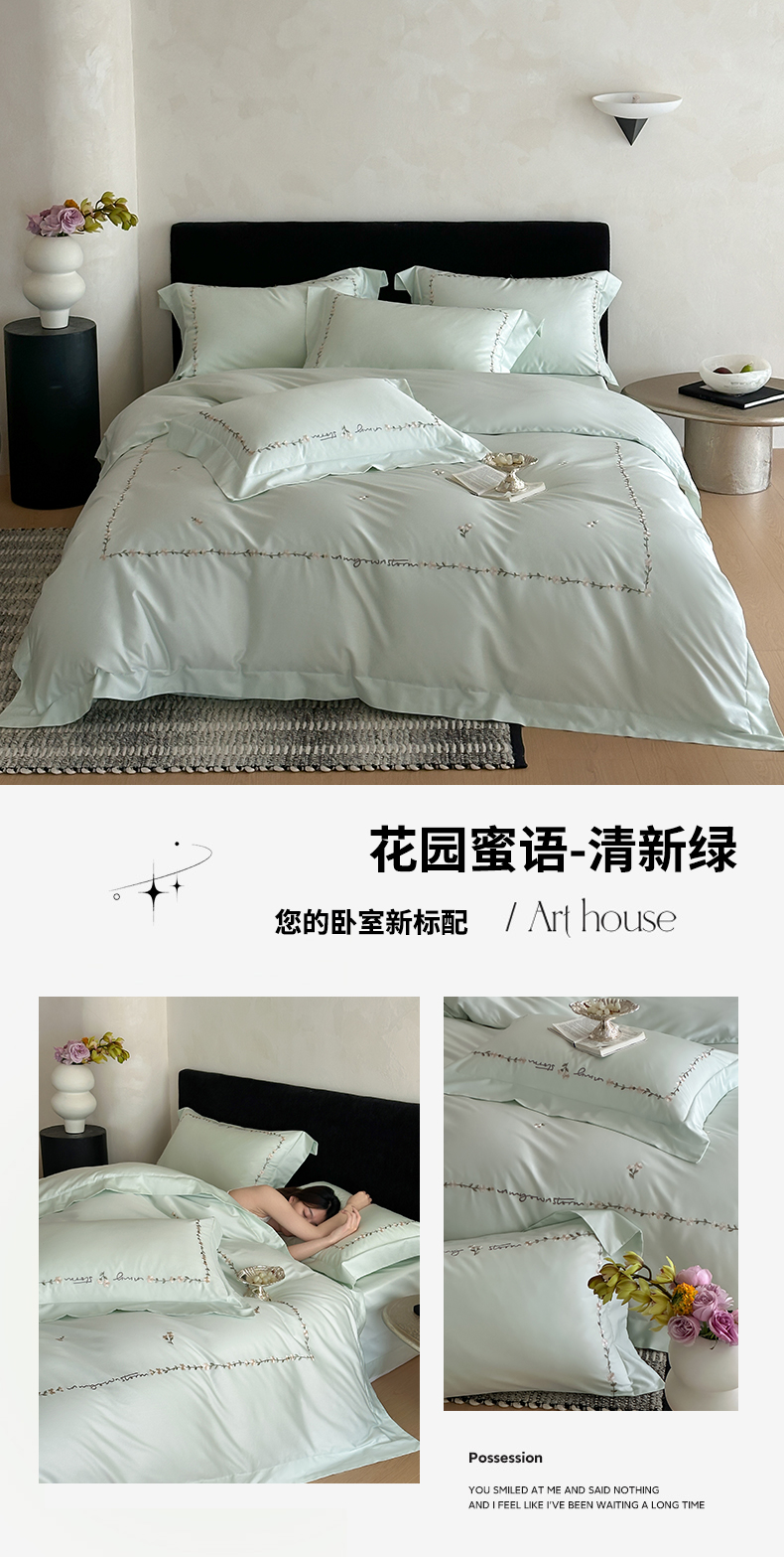 名品优仓 2026新款长绒棉50s全棉纯棉刺绣宽边款四件套-花园密语 花园蜜语-清新绿
