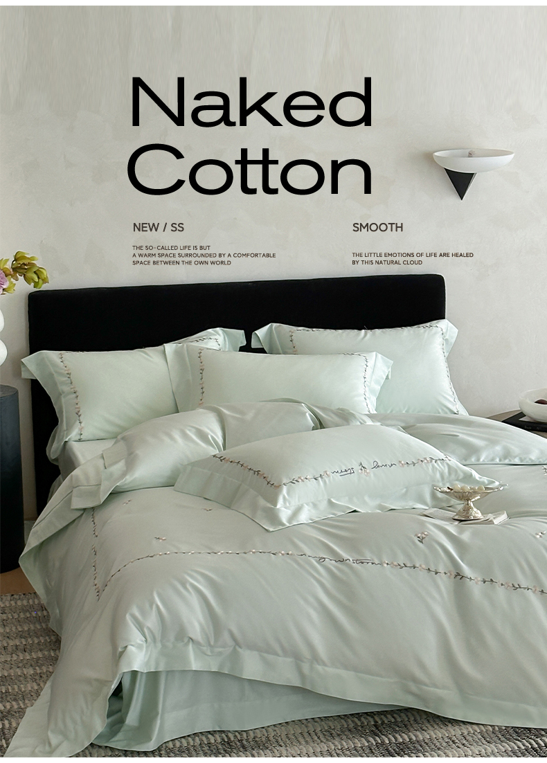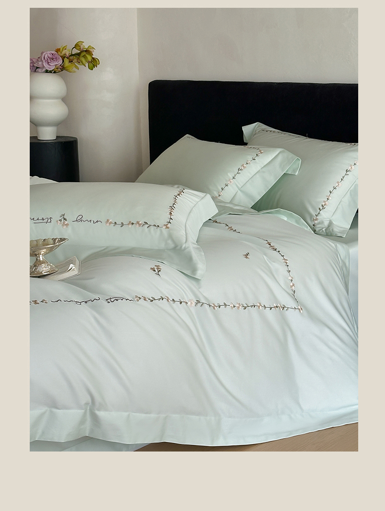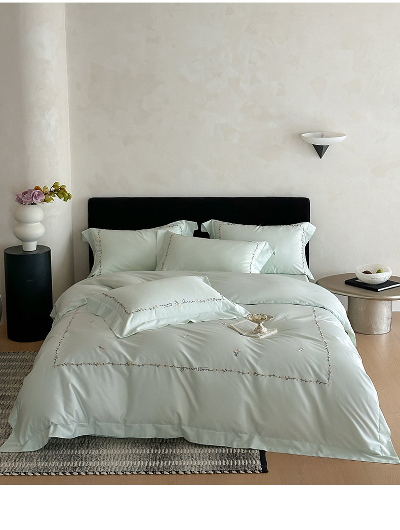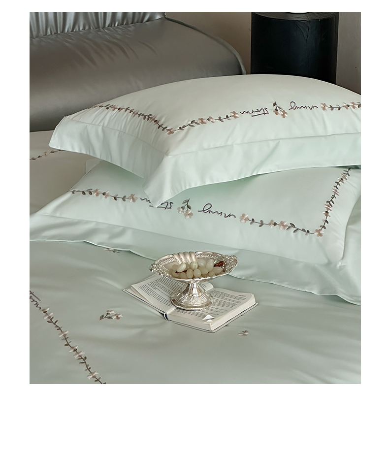 商品名称:名品优仓 2026新款长绒棉50s全棉纯棉刺绣宽边款四件套-花园密语 花园蜜语-清新绿