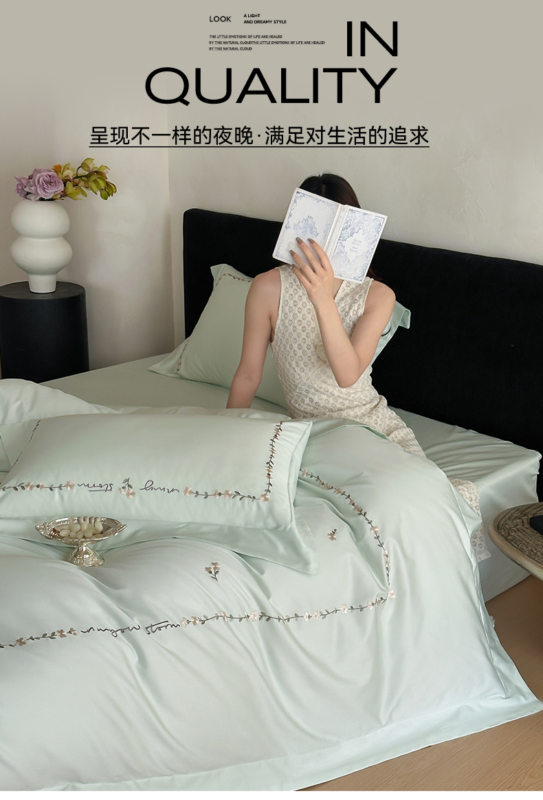(总)名品优仓 2026新款长绒棉50s全棉纯棉刺绣宽边款四件套-花栖,花栖-公主粉,花栖-梦幻紫,花栖-浅妃灰,花栖-浅云蓝,花栖-清新绿,花栖-肉肉粉