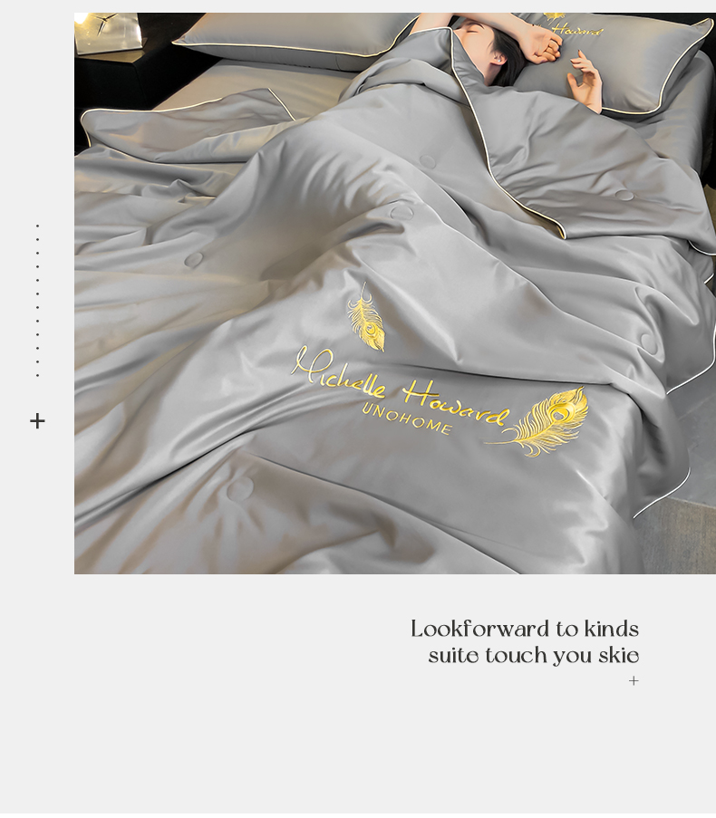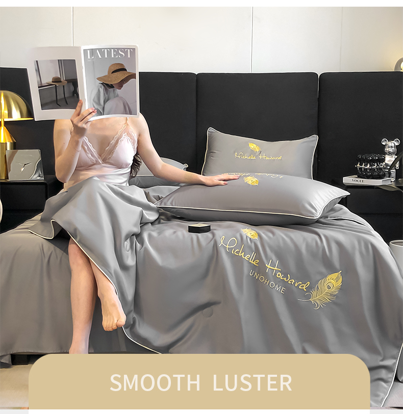 吾秀家居 2026新款双拼及羽毛刺绣夏被夏凉被空调被四件套-柔羽 羽毛经典灰