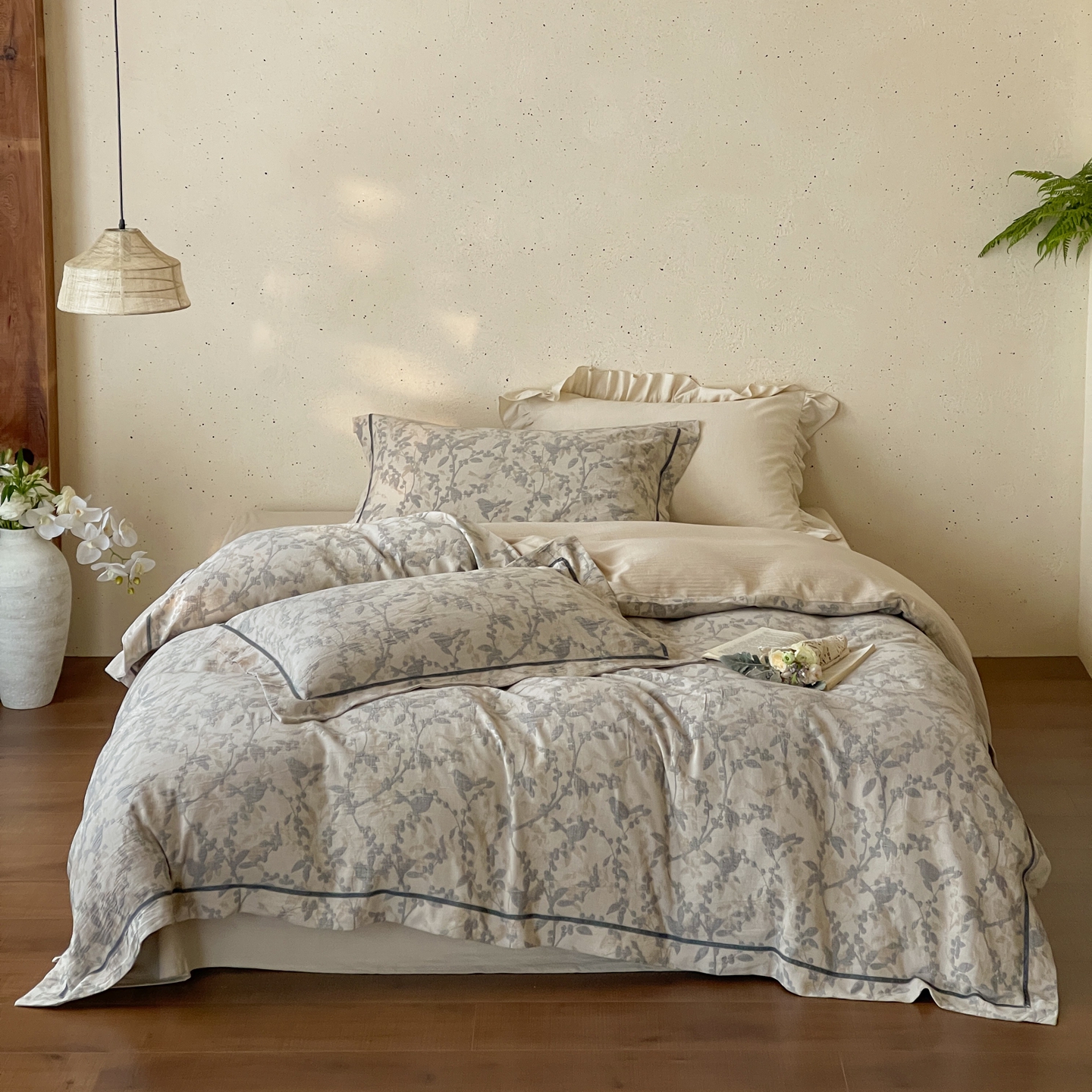 当前位置: 91家纺网 > 商品网购 > 床品套件 > 四件套 > 全棉普通四件套 > 云上 2026春夏新款全棉纯棉色织提花宽边压丝绒带四件套-乔木(活动后/券后售价 不低于358 上架参考价428起) 乔木-灰