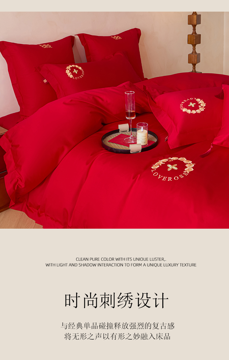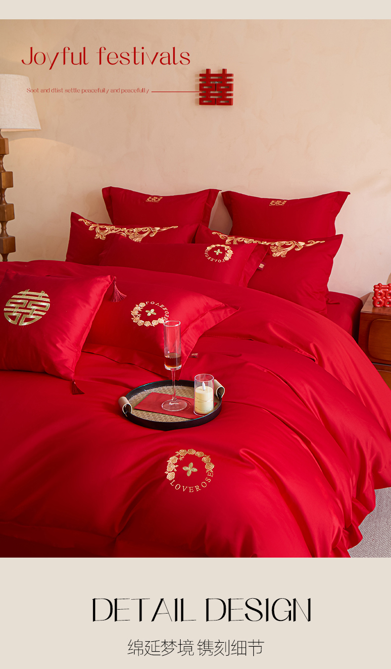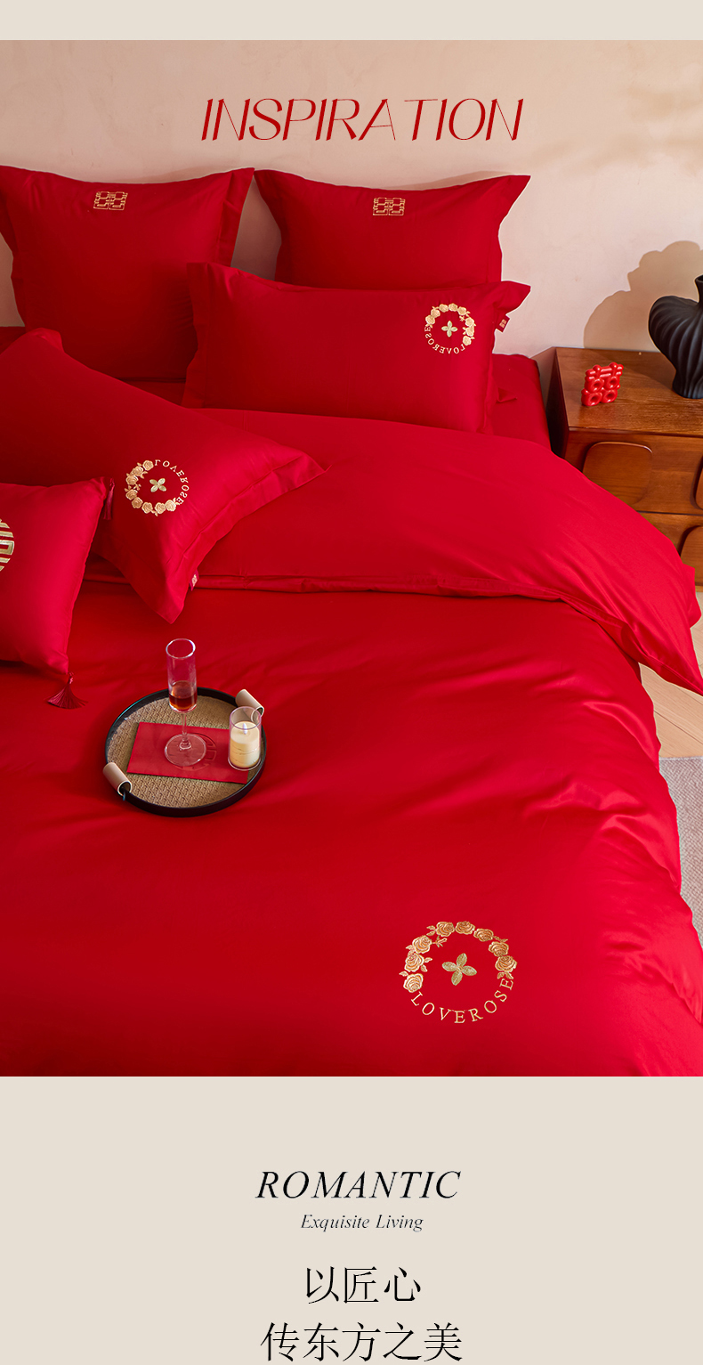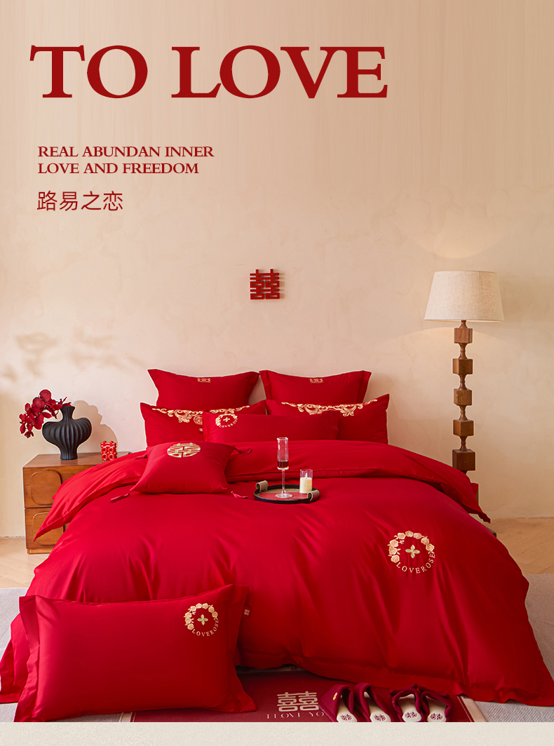 当前位置: 91家纺网 > 商品网购 > 床品套件 > 多件套 > 多件套 > 东方合美(原:皇家传奇) 2026新款长绒棉轻奢婚庆四件套 路易之恋