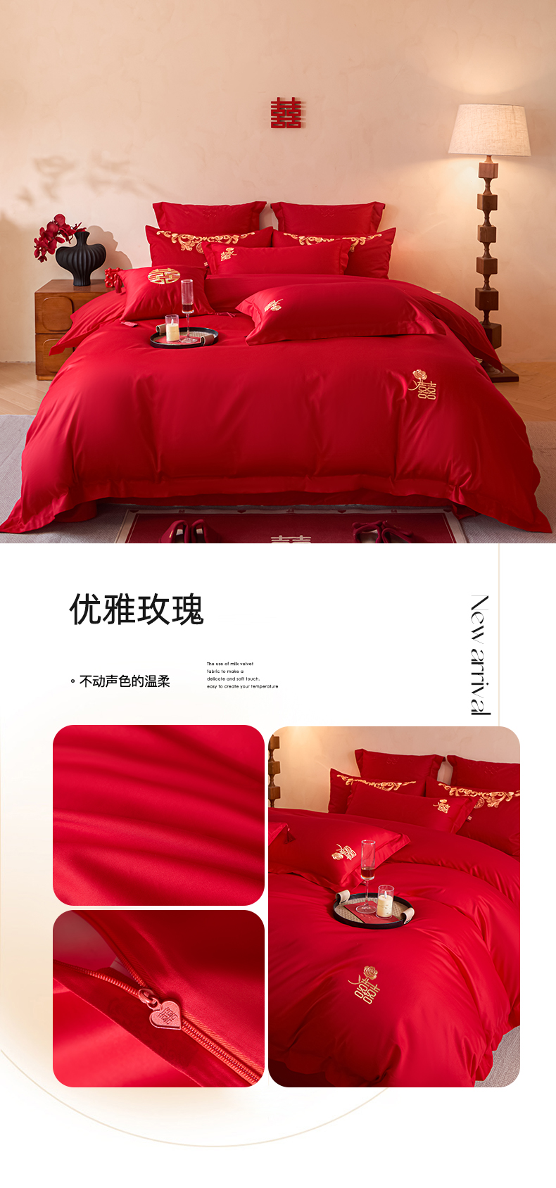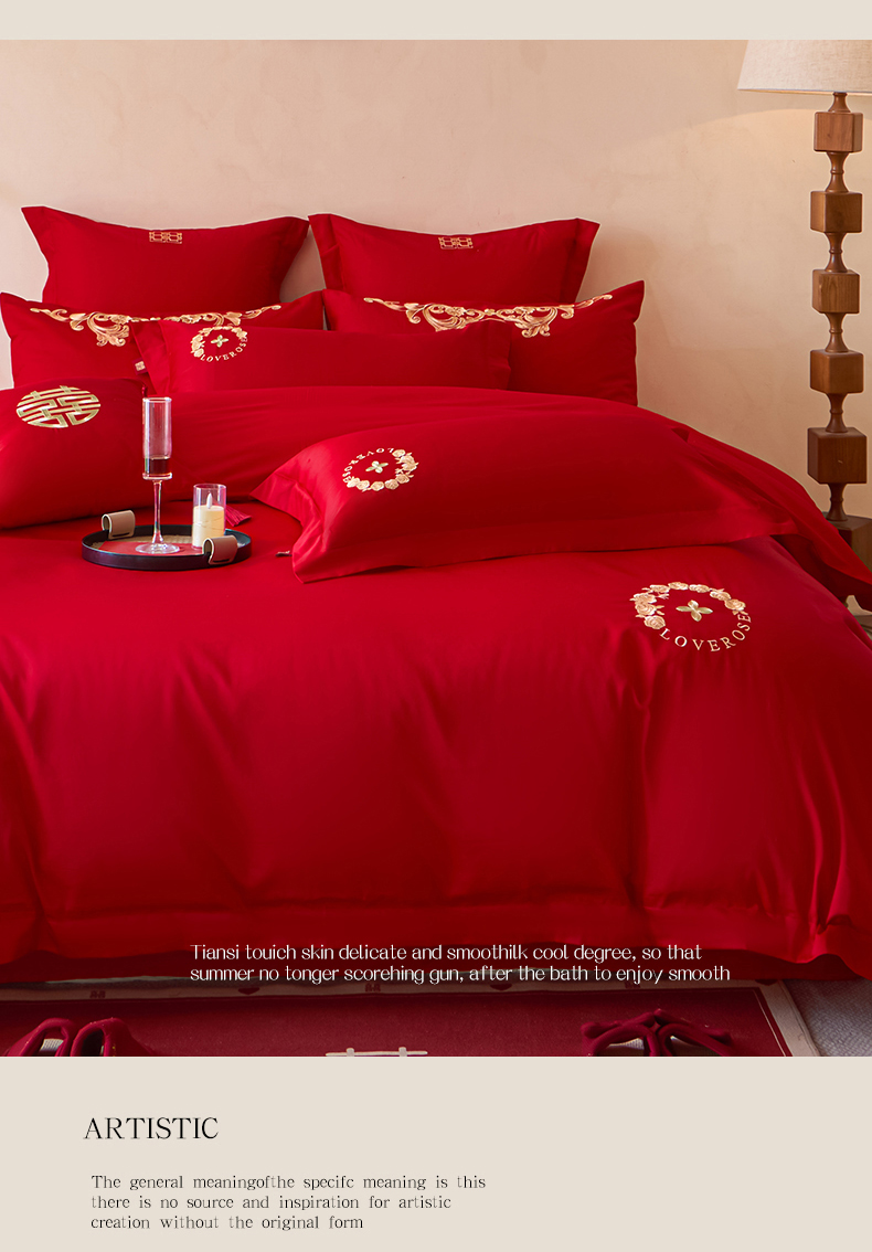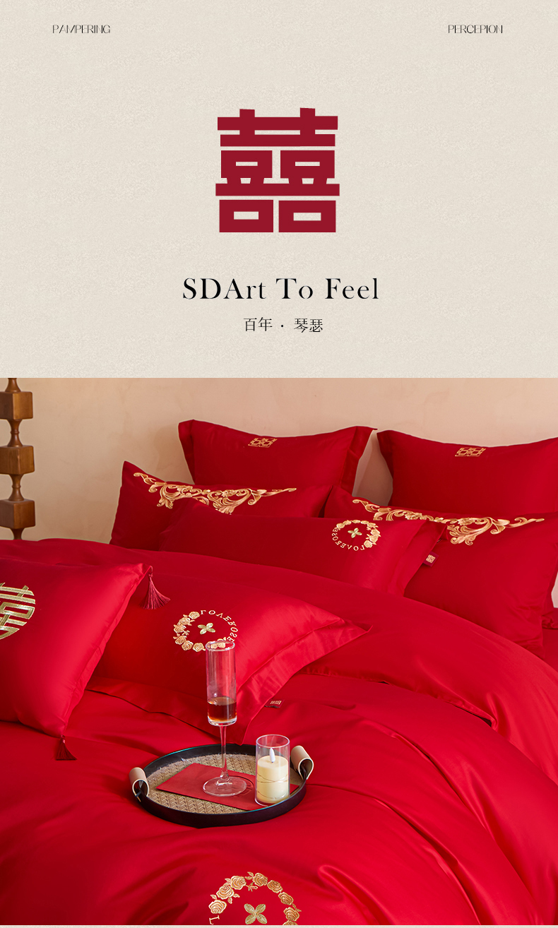 当前位置: 91家纺网 > 商品网购 > 床品套件 > 多件套 > 多件套 > 东方合美(原:皇家传奇) 2026新款长绒棉轻奢婚庆四件套 路易之恋