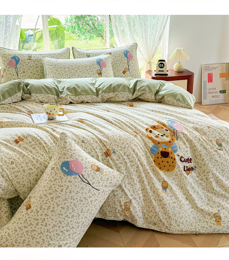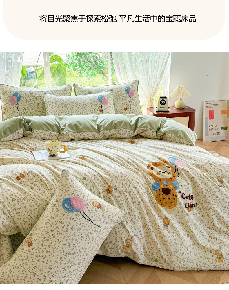 (总)恋佳居 2026新款毛巾绣古法棉床笠床盖四件套,粉豹甜猫,格趣萌熊,花狮轻梦,花兔小叙,花野遇美,蓝酷豹猫,迷雾紫兔,软萌时光